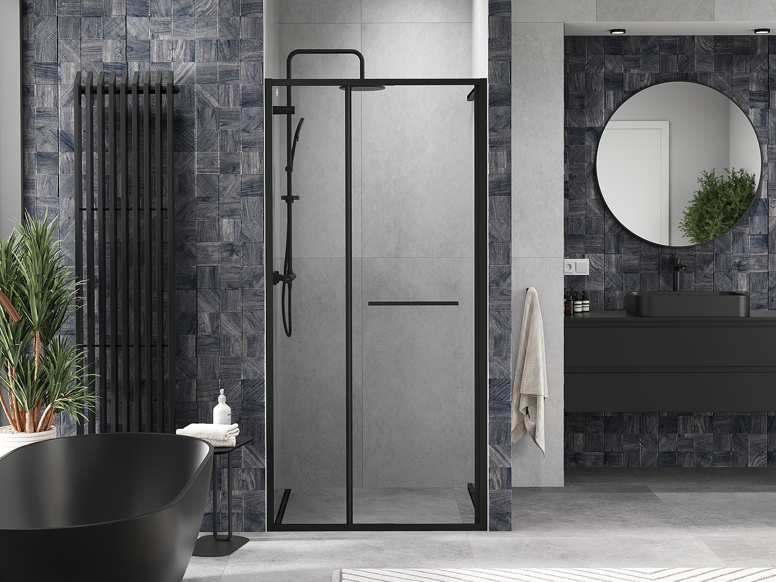 Mexen Linea stumdomos dušo durys 95 cm, permatomos, juodos - 8E1-095-000-70-70
