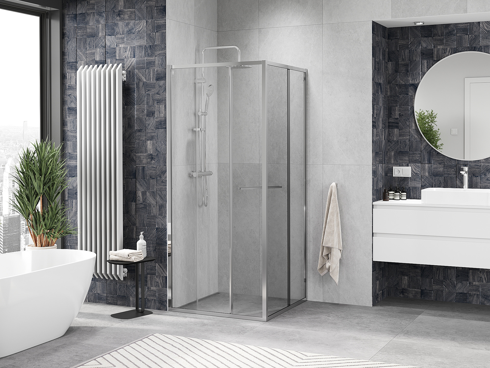 Mexen Linea yra elegantiška stumdomas dušo kabina, kuri siūlo erdvumą ir stilių, dėka 100x100 cm matmenų ir 200 cm aukščio. Skaidrus, grūdintas 6 mm storio stiklas užtikrina patvarumą ir modernią išvaizdą. Universalus montavimas leidžia įrengti tiek ant dušo padėklo, tiek tiesiai ant plytelių. Chromuota apdaila ir aliuminio profilis prideda elegancijos, o danga, palengvinanti valymą, bei sienos nelygumų kompensavimo sistema užtikrina naudojimo patogumą. Magnetinė juosta ir elastomeriniai sandarikliai efektyviai nukreipia vandenį, užtikrinant sandarumą. Reguliuojamo ilgio bėgeliai ir aliuminio sandarinimo slenkstis pabrėžia kabinos funkcionalumą.