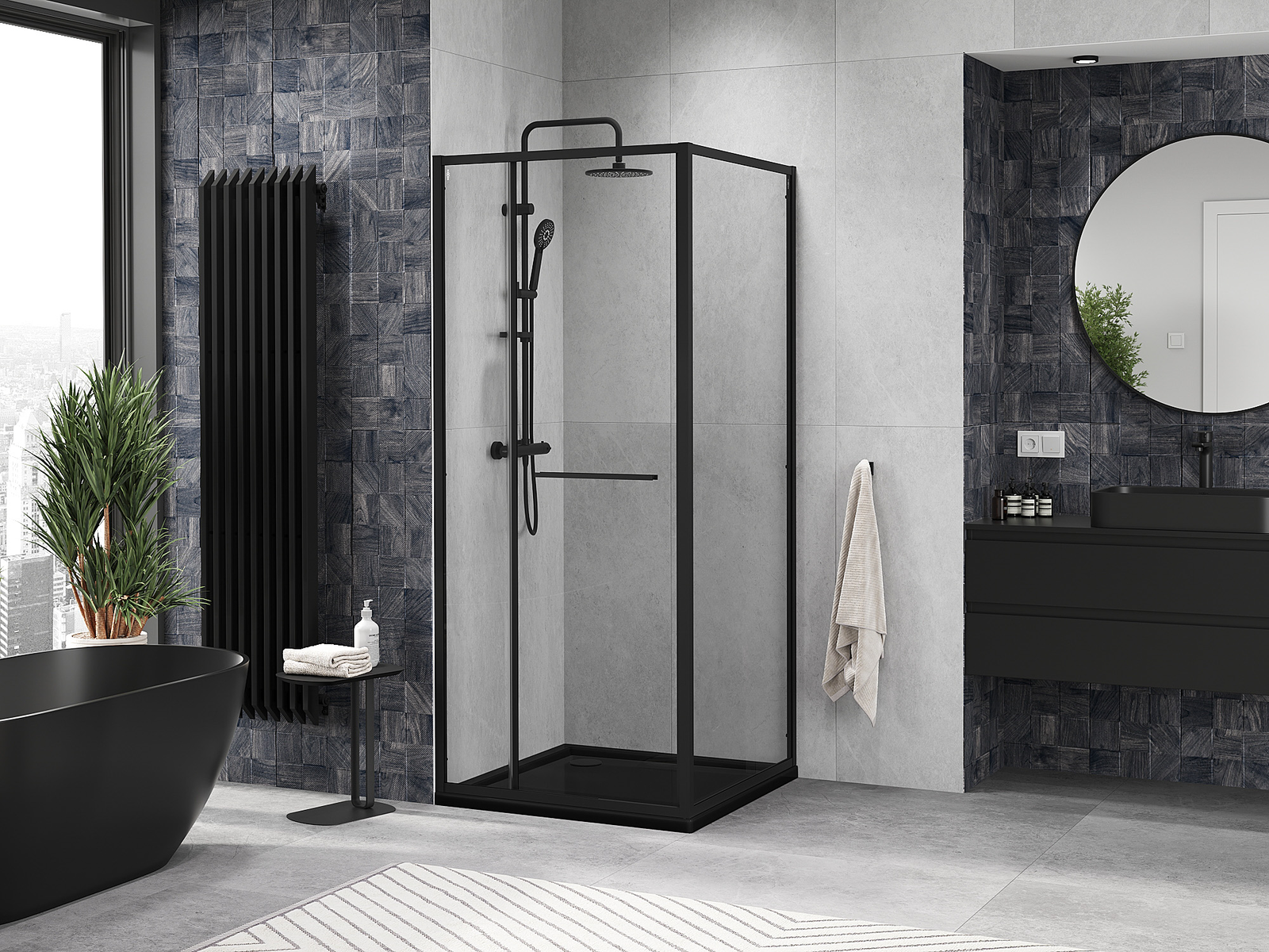 Mexen Rio kvadratinė dušo kabina 90 x 90 cm, skaidri, juoda - 860-090-090-70-00
