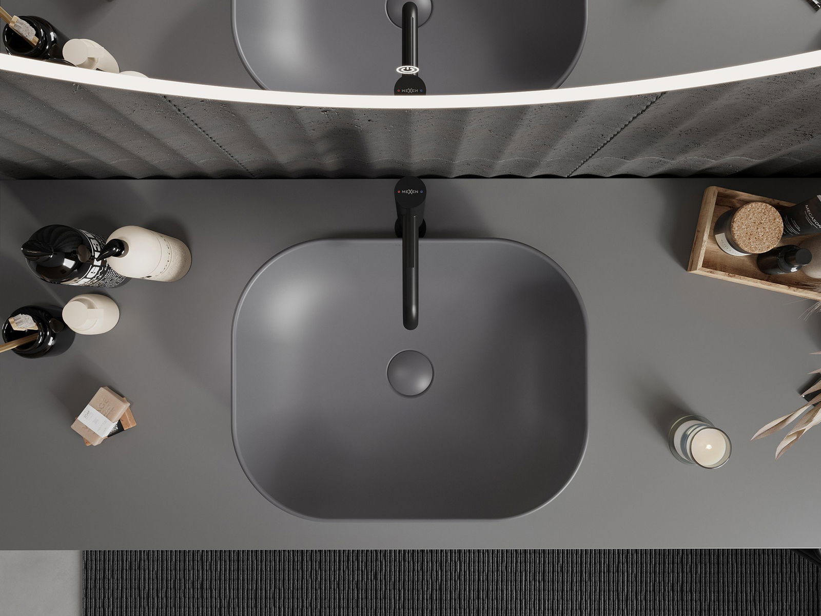 Matte keramikos paviršius puikiai pabrėžia produkto spalvos pobūdį, suteikdamas jai unikalų ir išraiškingą apdailą. Subtili matinės keramikos struktūra pristato eleganciją vonios kambaryje, sukurdama estetinę erdvę.