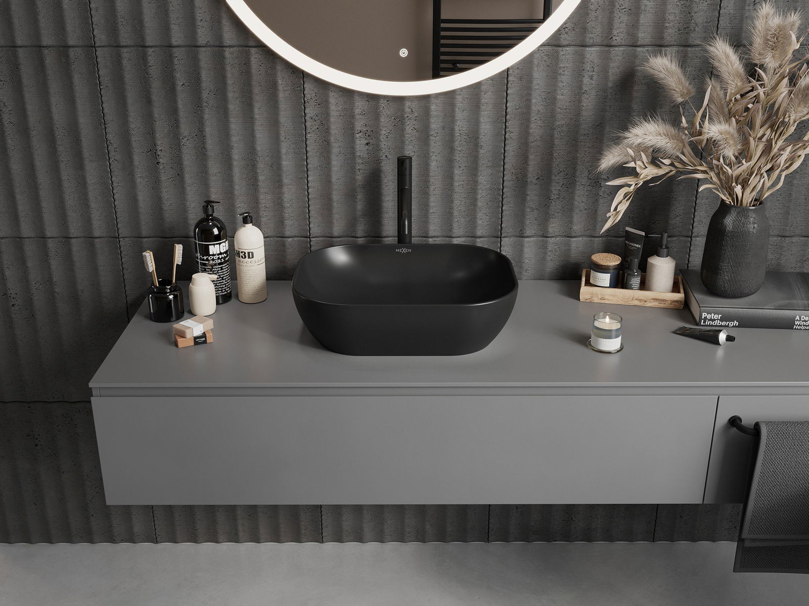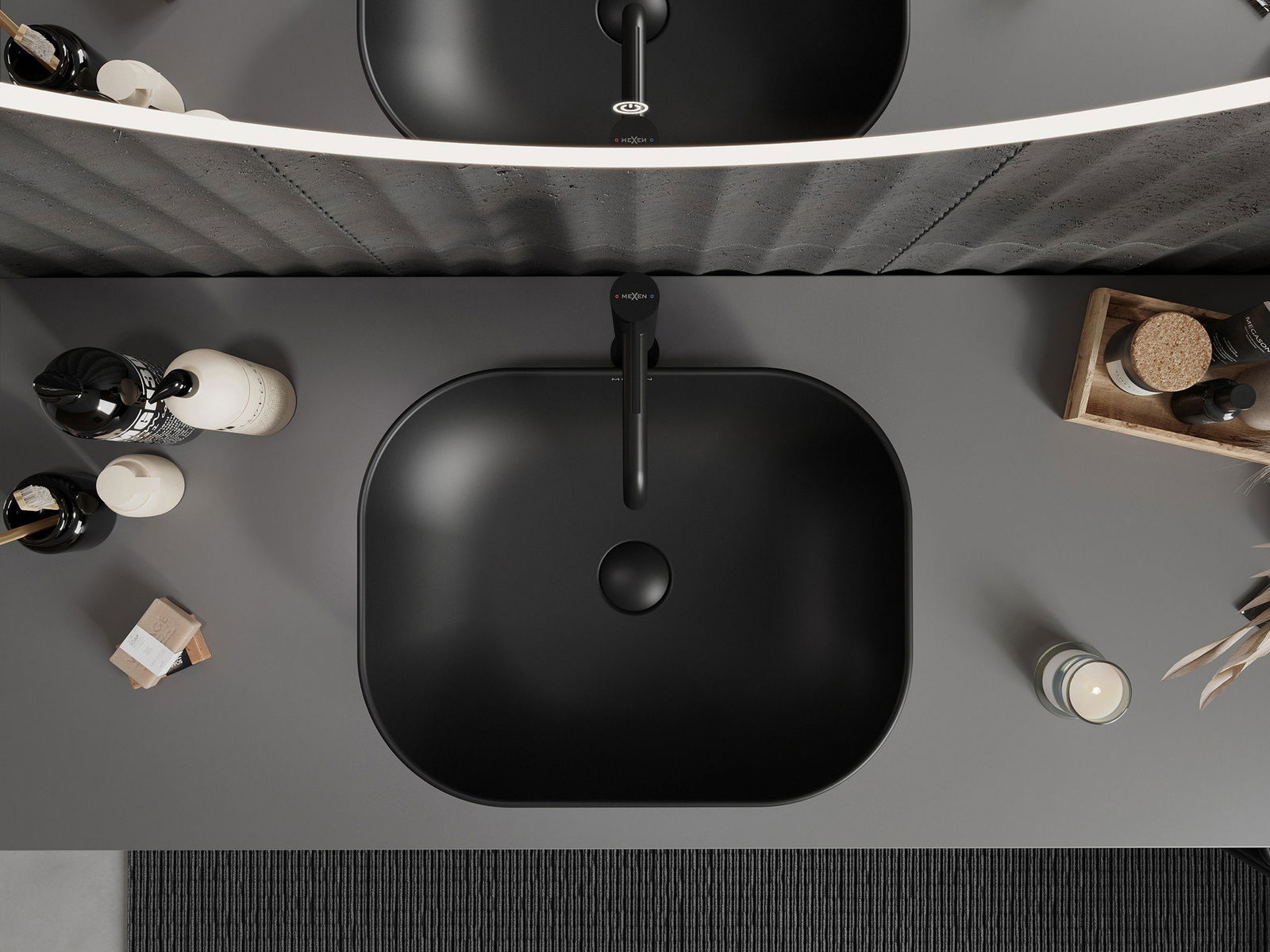 Matte keramikos paviršius puikiai pabrėžia produkto spalvos pobūdį, suteikdamas jai unikalų ir išraiškingą apdailą. Subtili matinės keramikos struktūra pristato eleganciją vonios kambaryje, sukurdama estetinę erdvę.