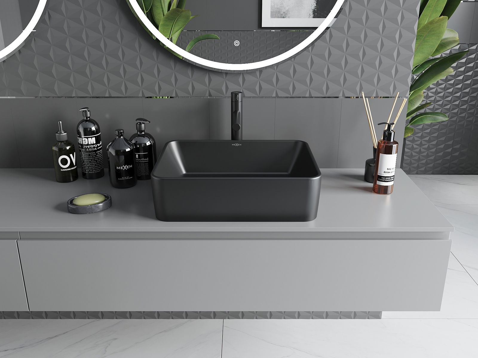 Matte keramikos paviršius puikiai pabrėžia produkto spalvos pobūdį, suteikdamas jai unikalų ir išraiškingą apdailą. Subtili matinės keramikos struktūra pristato eleganciją vonios kambaryje, sukurdama estetinę erdvę.