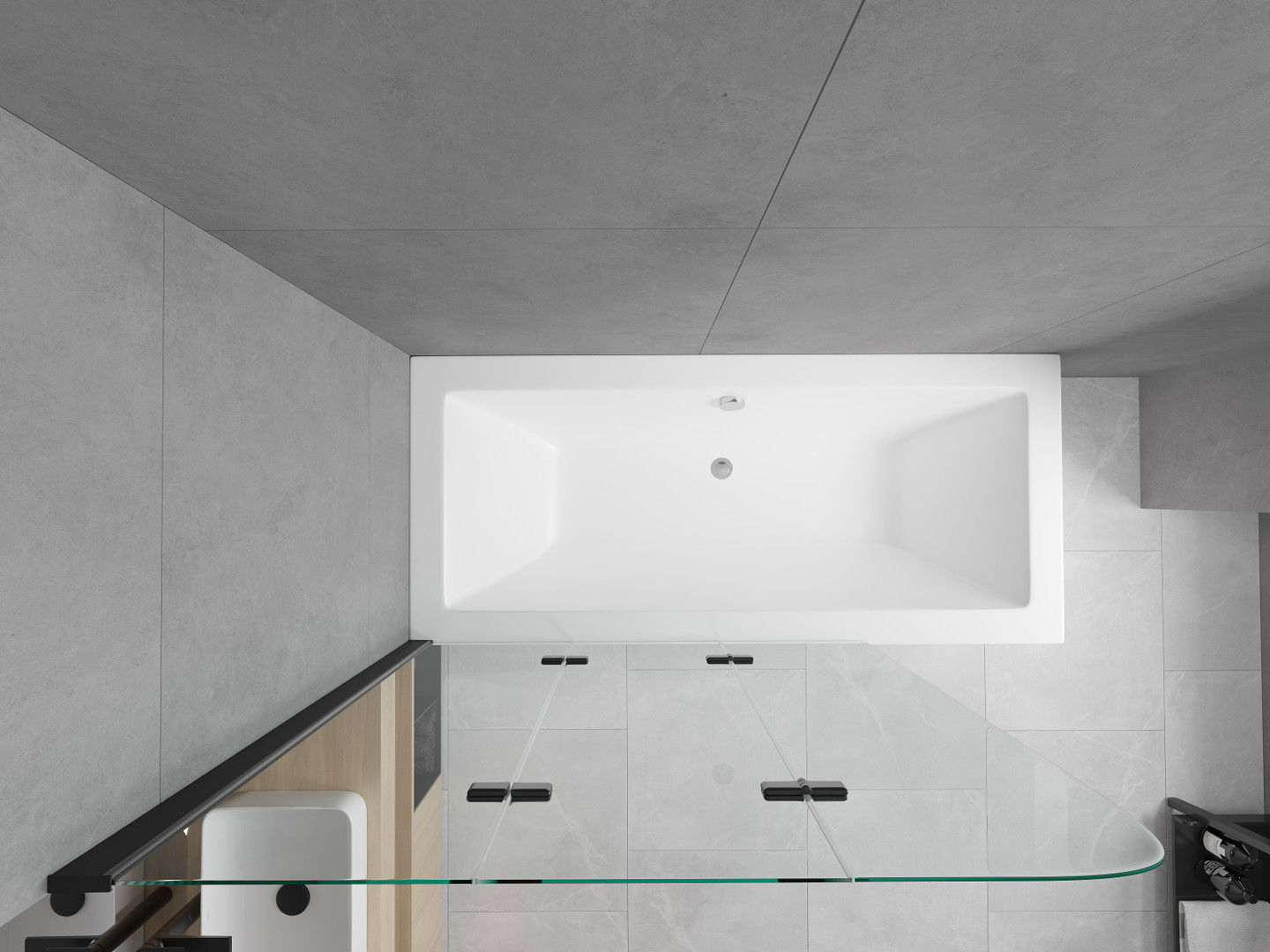 Į rinkinį įtraukta automatinė vonia. Jis turi rankenėlę, su kuria galime atidaryti ar uždaryti kanalizacijos vožtuvą, nesigilindami rankos. Higieniškas ir saugus sprendimas, suteikiantis visišką kontrolę.