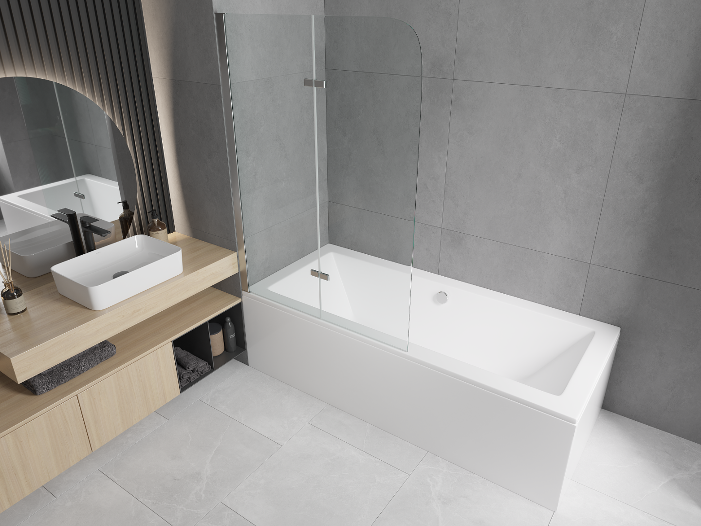 Ekranas pagamintas iš dviejų durų, kurias galima sulankstyti. Toks sprendimas leidžia sutaupyti daugiau vietos vonios kambaryje ir leidžia laisvai naudotis likusia erdve, kai nesinaudojame maudymosi zona.