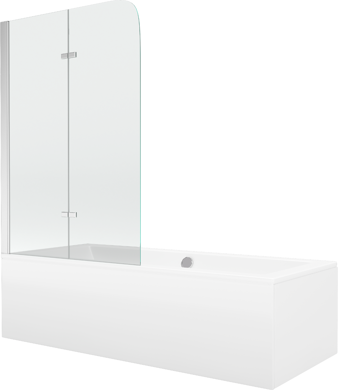 Mexen Cube stačiakampė vonia 180 x 80 cm su korpusu ir 2-dalių 100 cm ekranu, skaidri, chromas - 550518080X9010020100