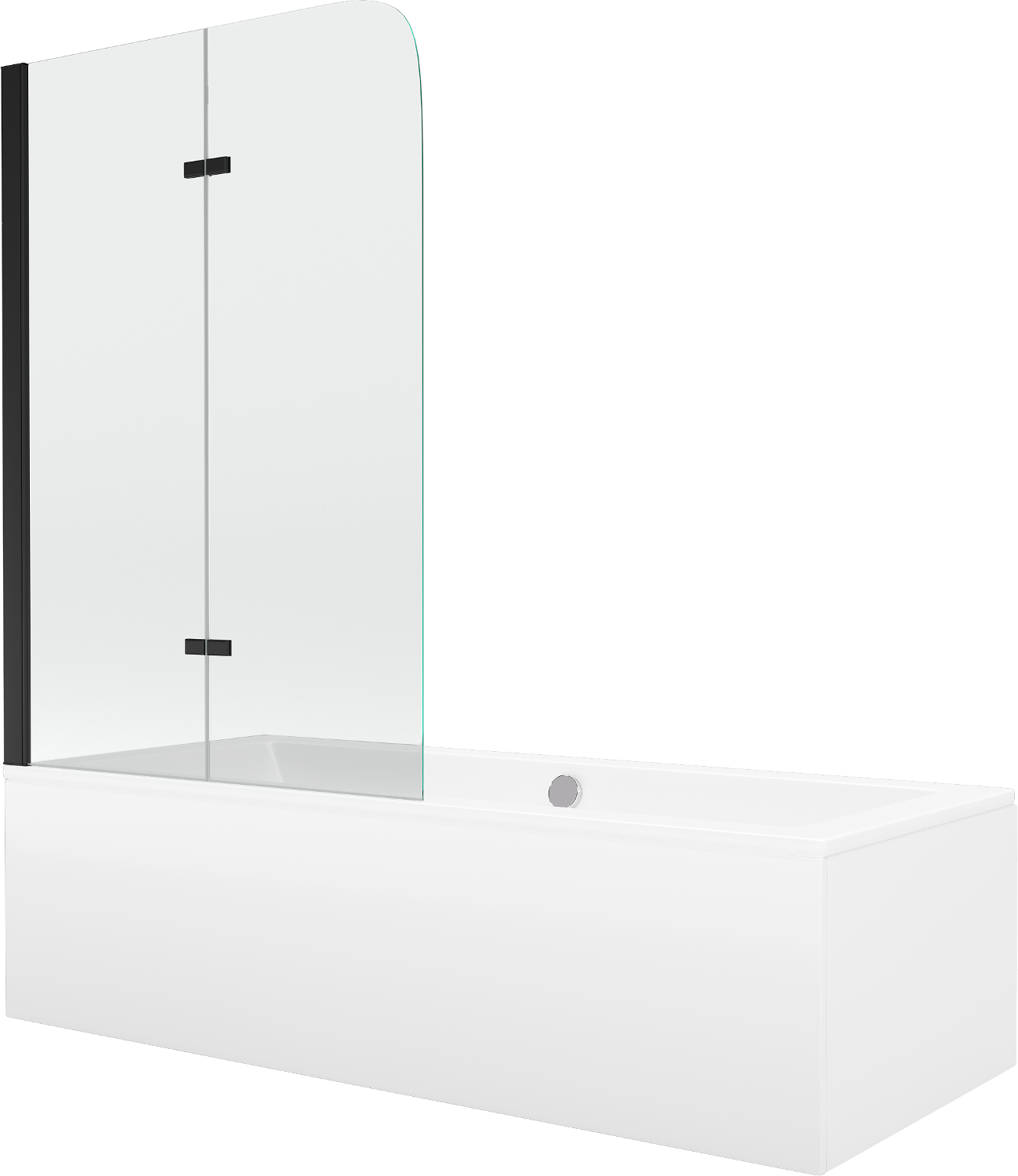 Mexen Cube stačiakampė vonia 180 x 80 cm su korpusu ir 2 varčių 100 cm ekranu, permatomas, juodas - 550518080X9010027000