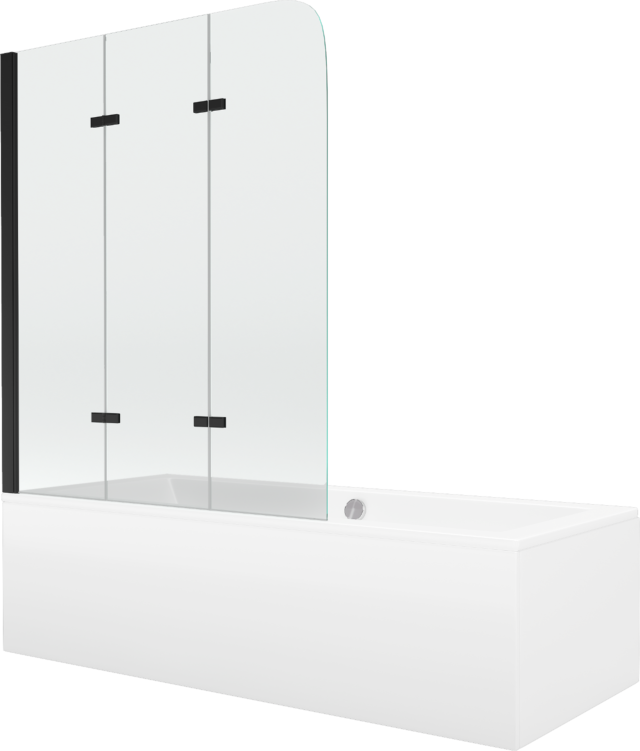 Mexen Cube stačiakampė vonia 180 x 80 cm su apdaila ir 3 dalių paravanu 120 cm, skaidrus, juodas - 550518080X9012037000