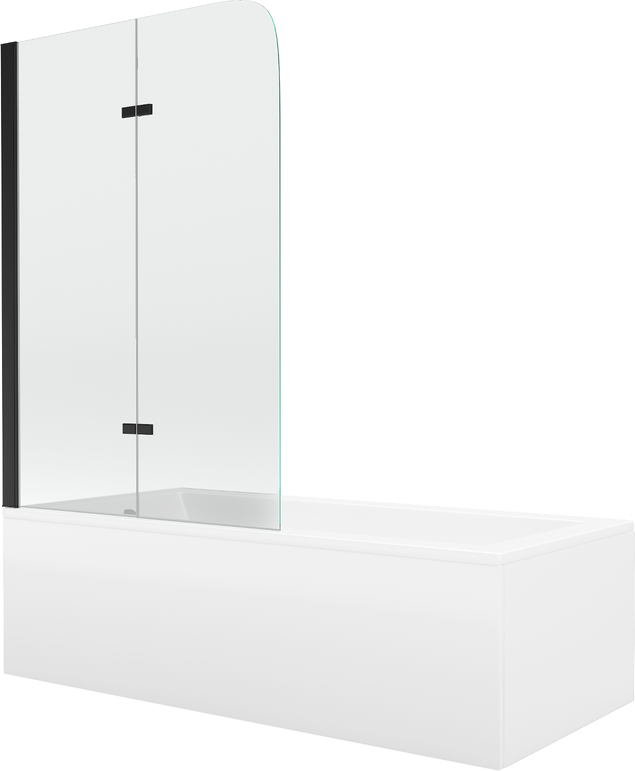 Mexen Cubik stačiakampė vonia 170 x 70 cm su apdaila ir 2 durų stogu 100 cm, skaidri, juoda - 550317070X9010027000