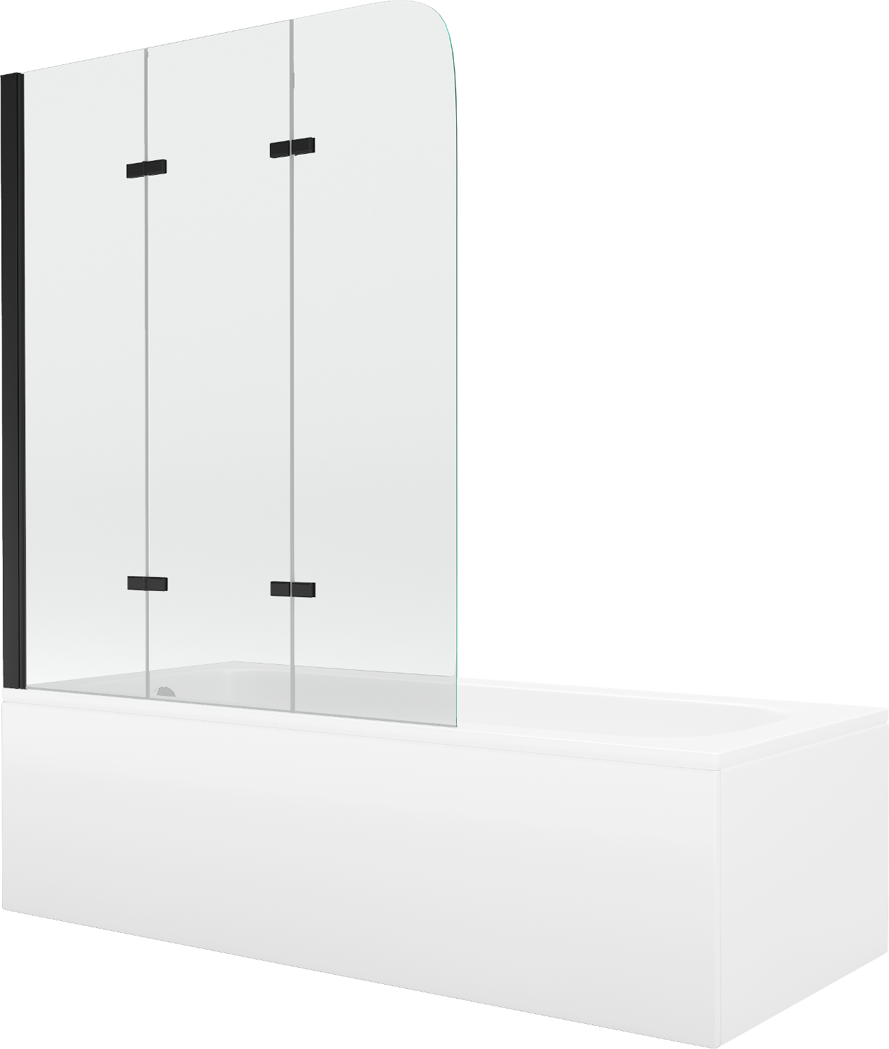 Mexen Vega stačiakampė vonia 160 x 70 cm su apdaila ir 3 dalių 120 cm pertvara, skaidrus, juodas - 550116070X9012037000