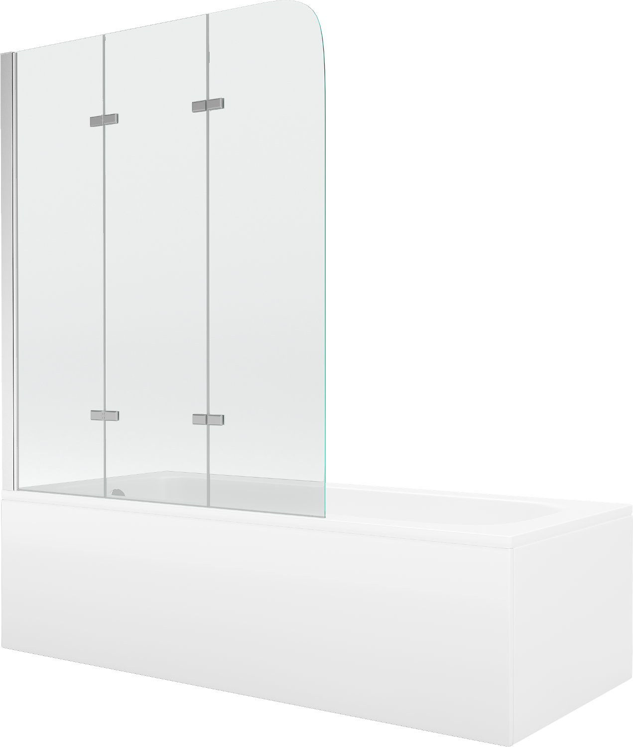 Mexen Vega stačiakampė 170 x 70 cm su apdaila ir 3-duris pertvara 120 cm, skaidrus, chromas - 550117070X9012030100