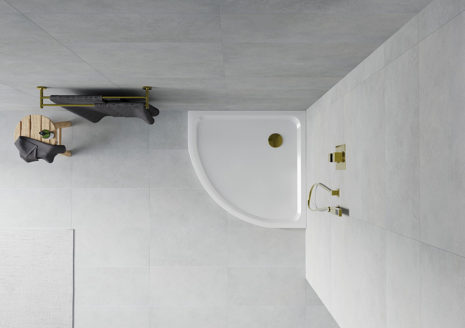 Mexen Flat pusapvalė plona dušo padėklas 70 x 70 cm, baltas, auksinė sifono - 41107070G