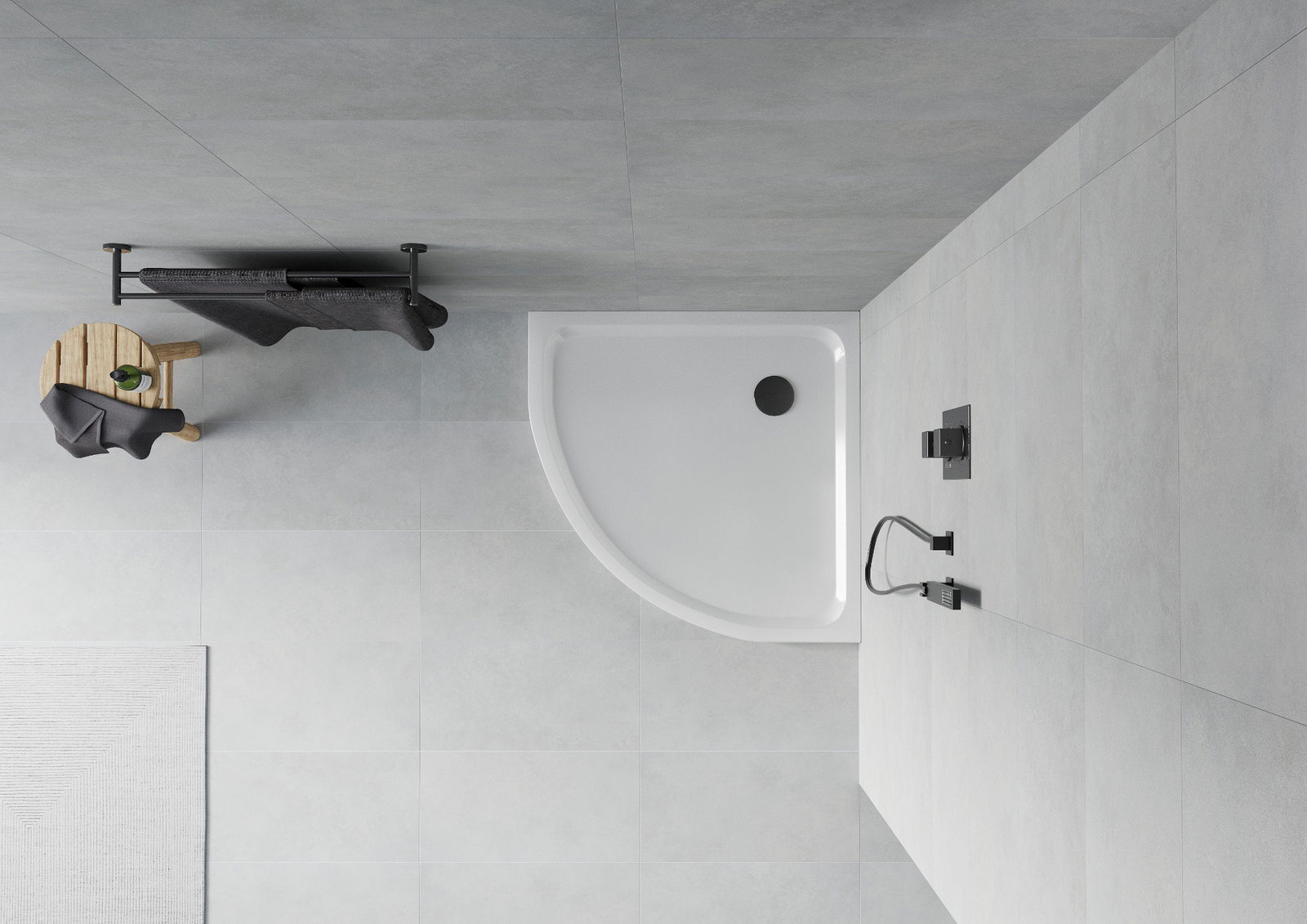 Mexen Flat yra pusapvalės formos dušo padėklas, kurio matmenys 80 x 80 cm, pagamintas iš aukštos kokybės sanitarinio akrilo. Jis turi elegantišką baltą spalvą su patraukliu blizgesiu, o jo storis yra tik 5 cm, kas puikiai tinka modernioms vonioms. Komplekte yra efektingas juodas sifonas, kurį galima lengvai valyti iš viršaus. Nutekėjimo skersmuo - 90 mm, kas užtikrina puikų pralaidumą. Šis produktas yra idealus estetikos ir funkcionalumo derinys, kuris padidins kiekvienos vonios vertę.