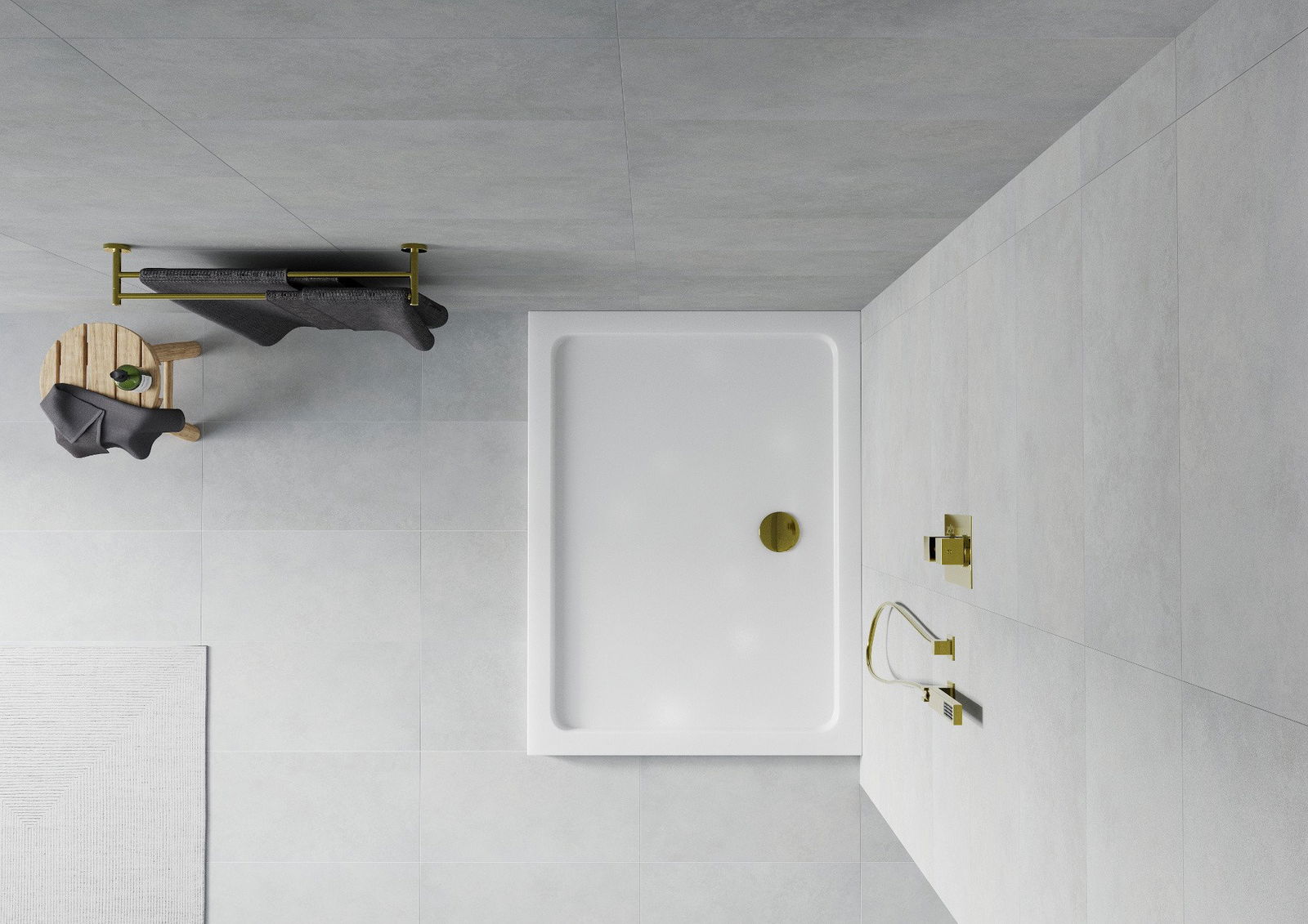 Mexen Flat stačiakampė plona dušo padėklas 110 x 80 cm, baltas, auksinis sifonas - 40108011G