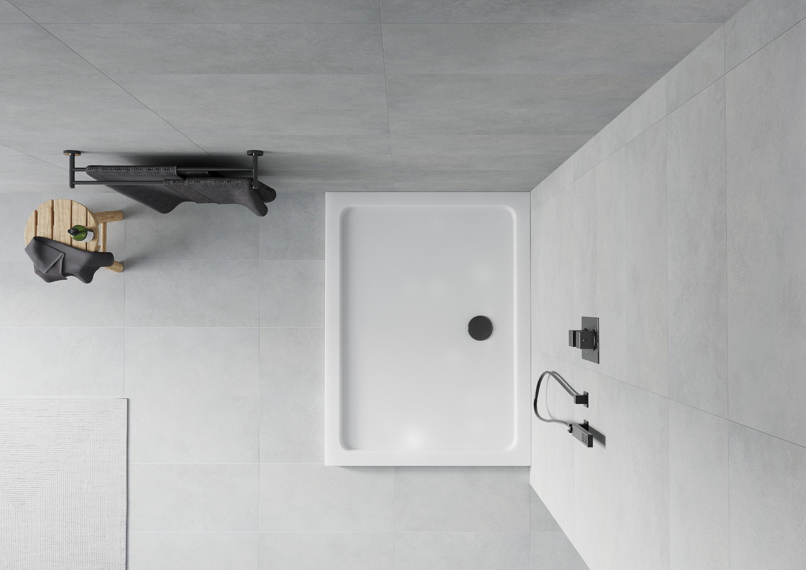 Mexen Flat stačiakampė plokščia dušo padėklas 130 x 90 cm, baltas, juodas sifonas - 40109013B