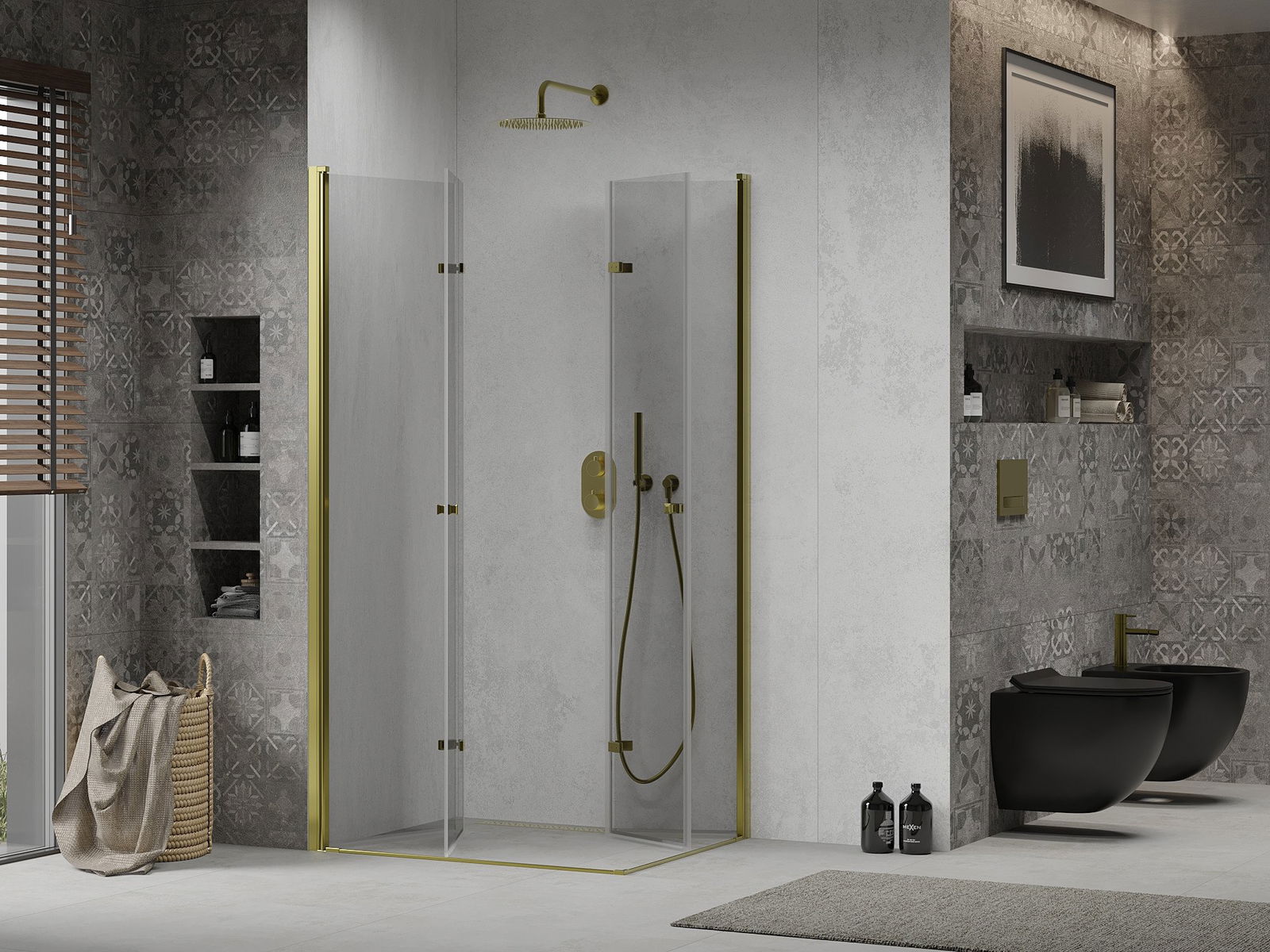Mexen Lima Duo sulankstoma dušo kabina 100 x 90 cm, skaidri, auksinė - 856-100-090-50-00-02