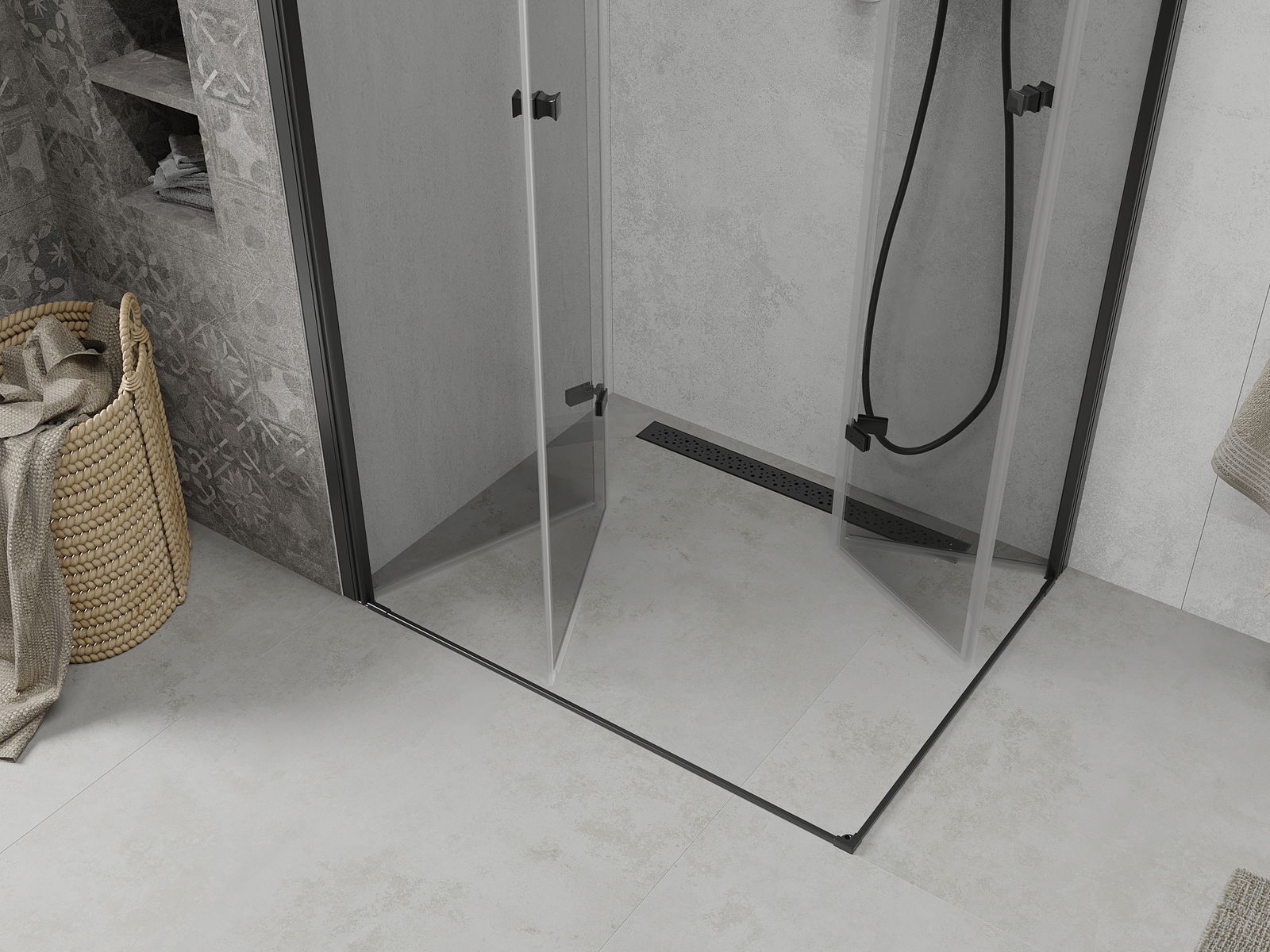 Mexen Lima Duo sulankiojama dušo kabina 80 x 70 cm, skaidri, juoda - 856-080-070-70-00-02