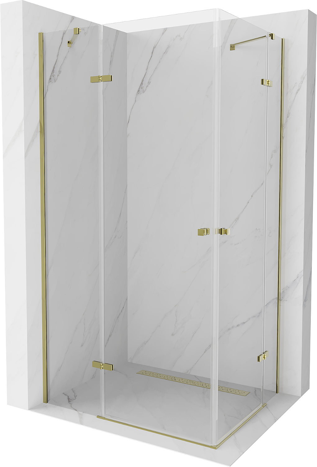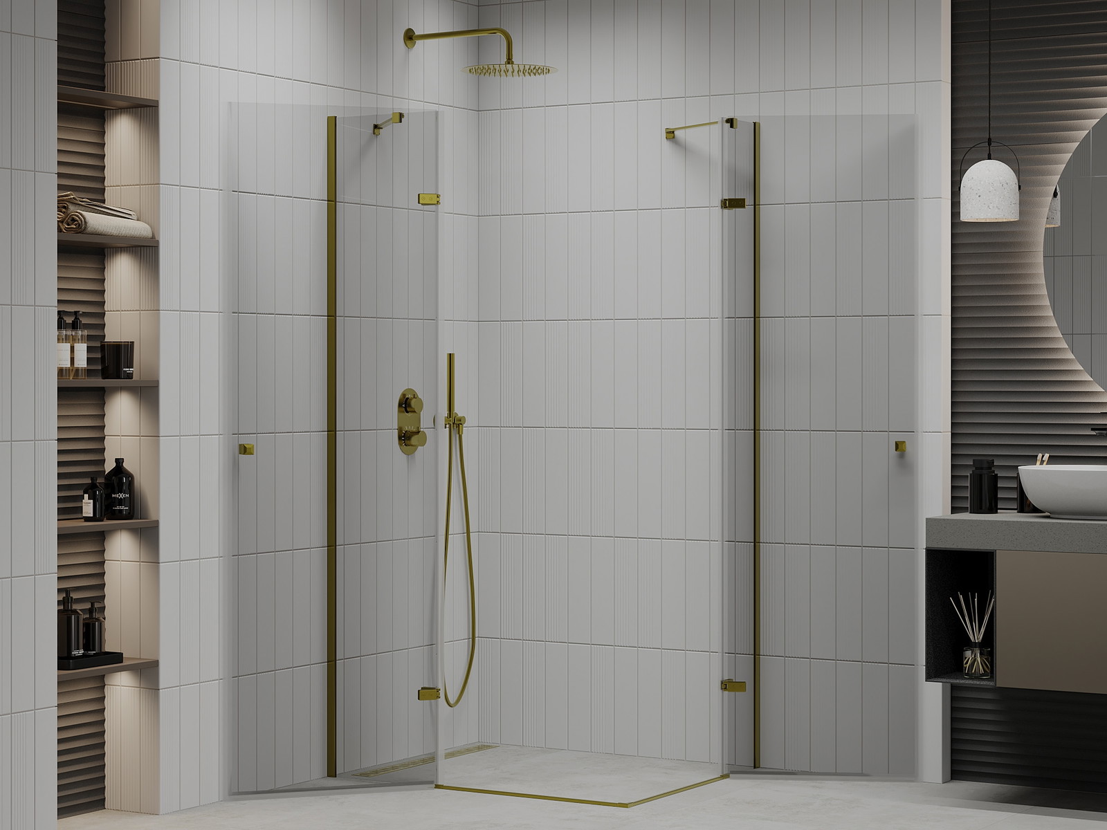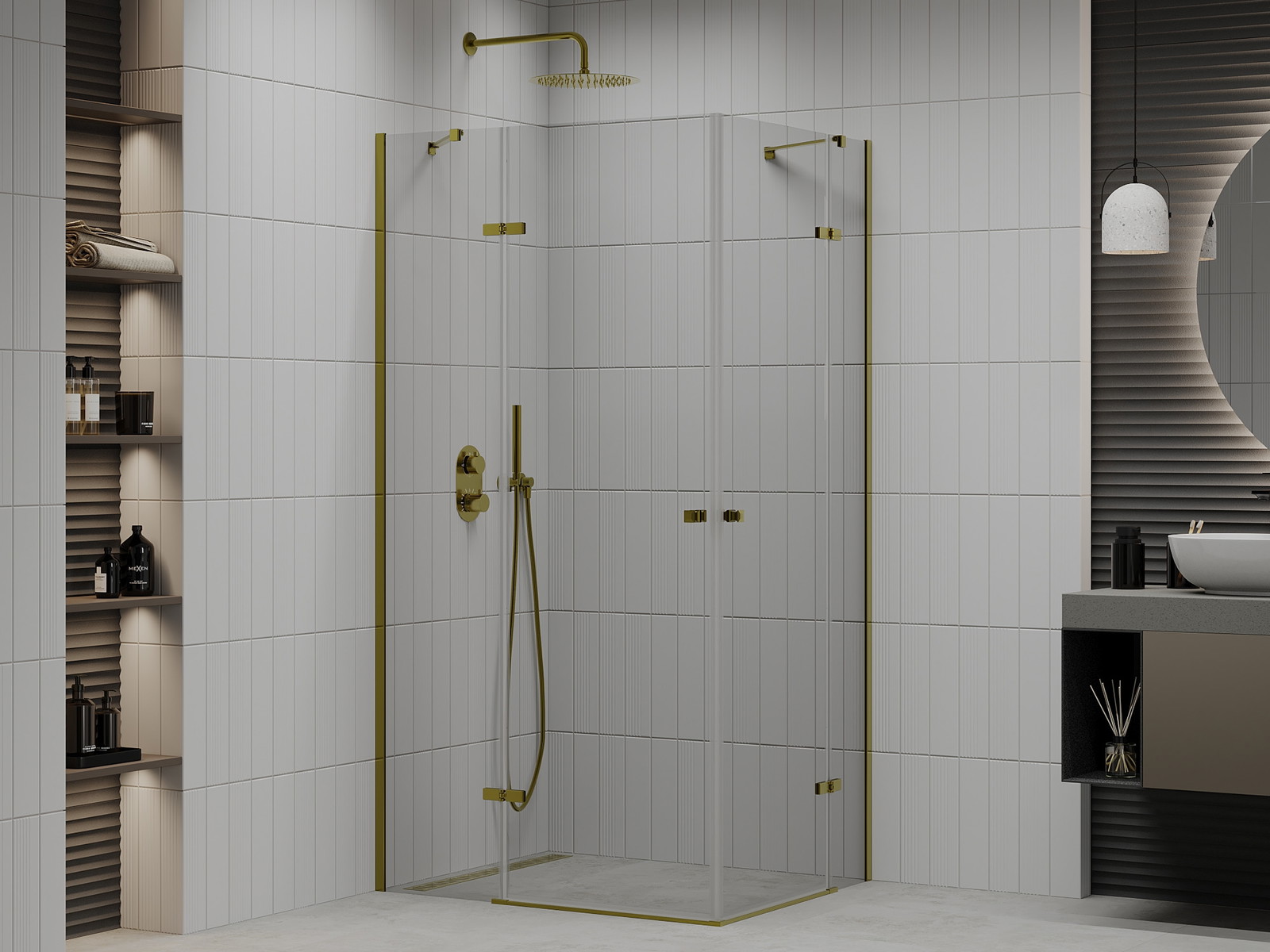 Mexen Roma Dvigulė dušo kabina su vartomomis durimis 100 x 90 cm, skaidri, auksinė - 854-100-090-50-00-02