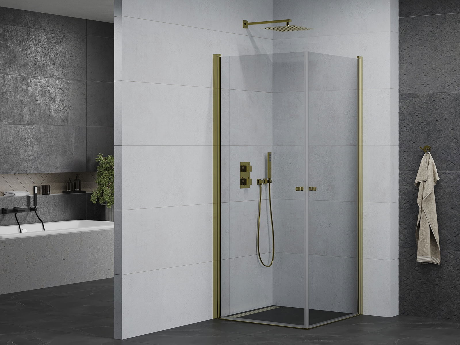 Mexen Pretoria Duo atveriama dušo kabina 70 x 70 cm, skaidri, auksinė - 852-070-070-50-00-02