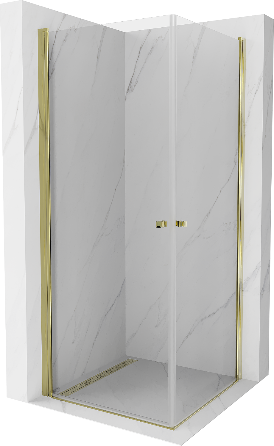 Mexen Pretoria Duo 80 x 80 cm atveriama dušo kabina, skaidri, auksinė - 852-080-080-50-00-02