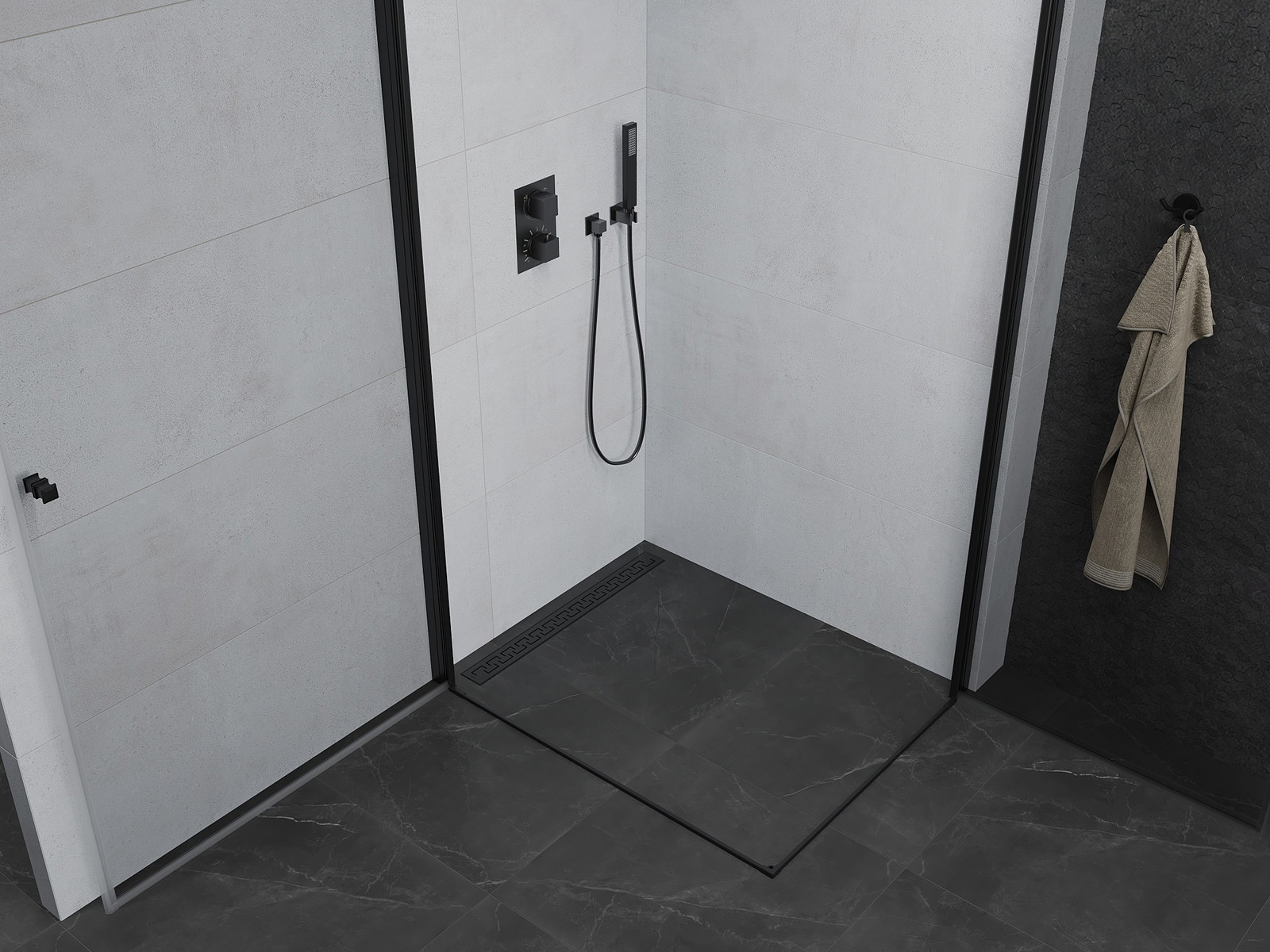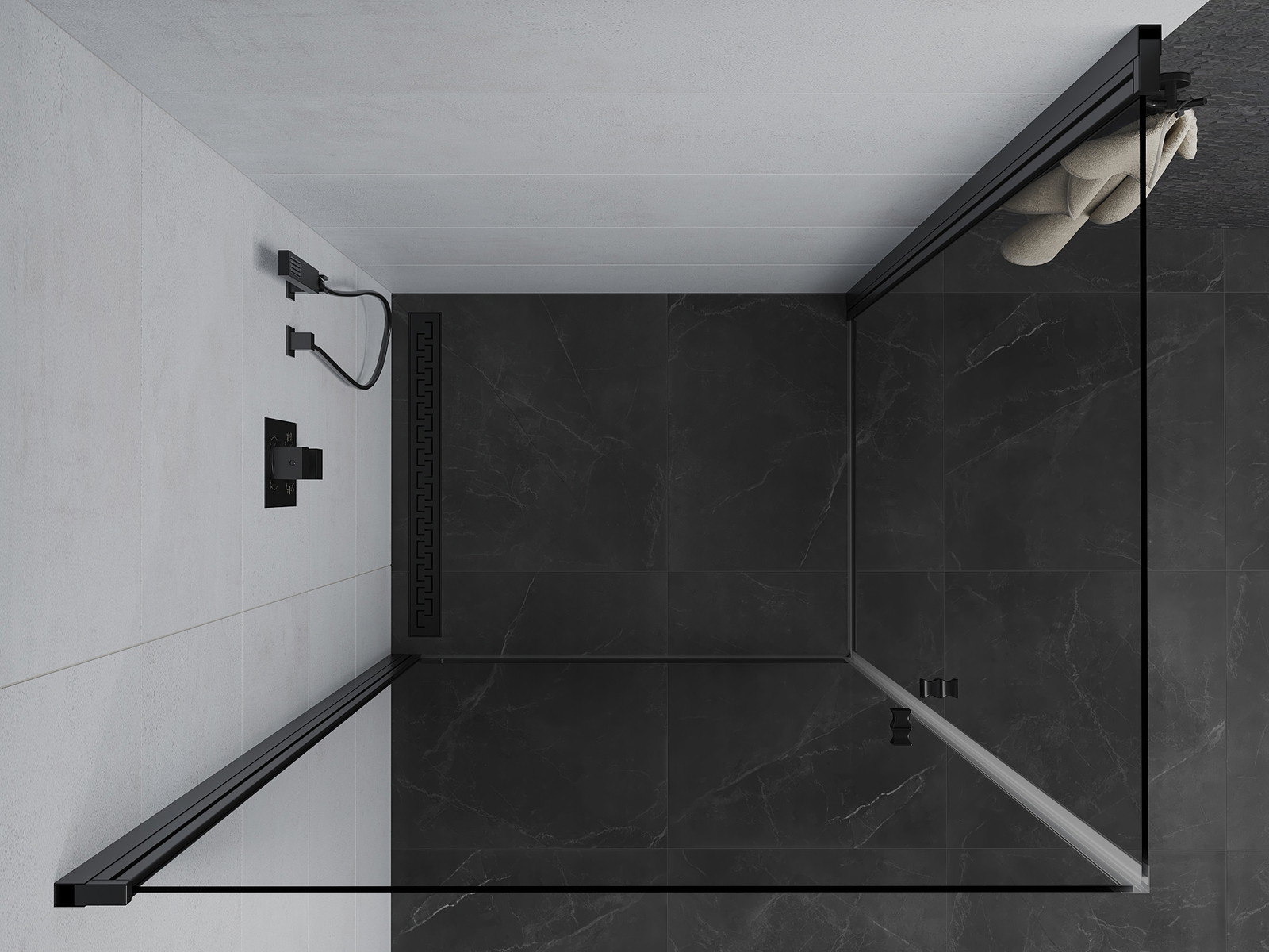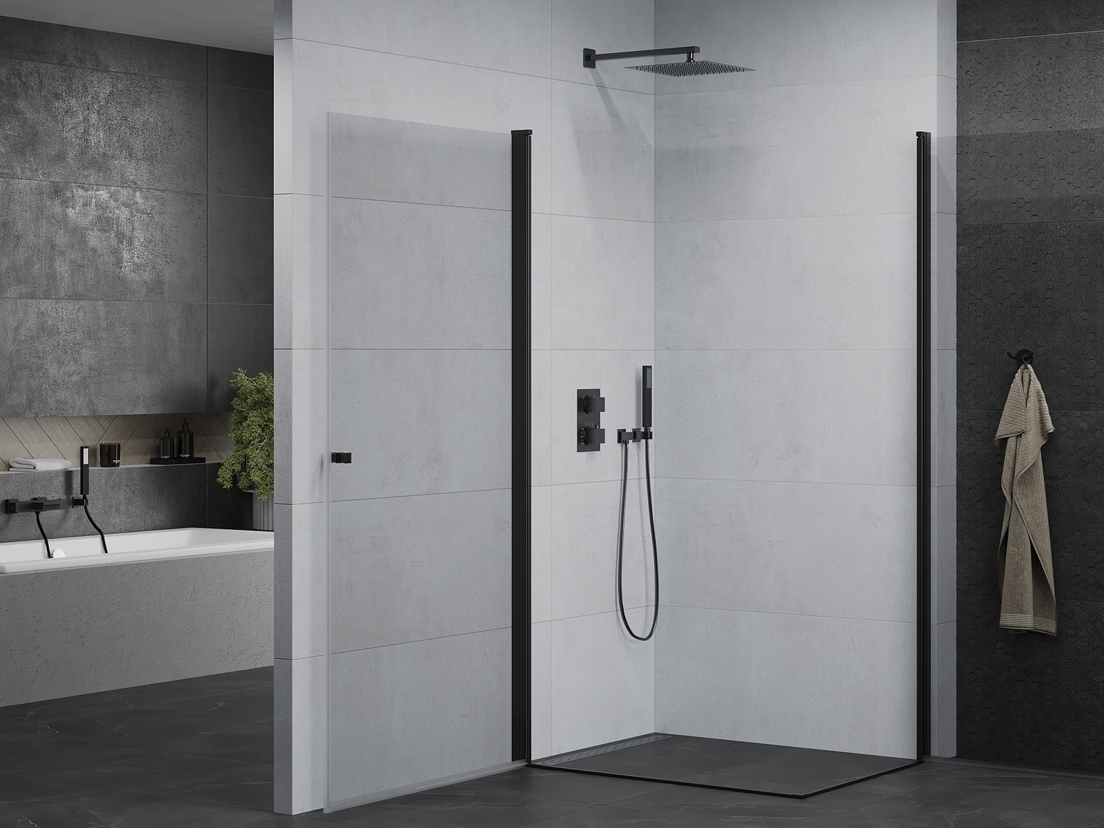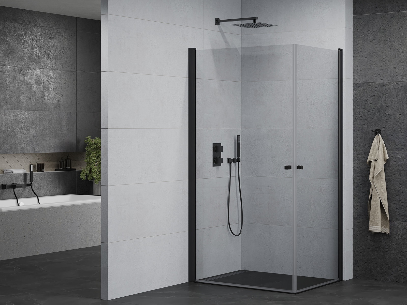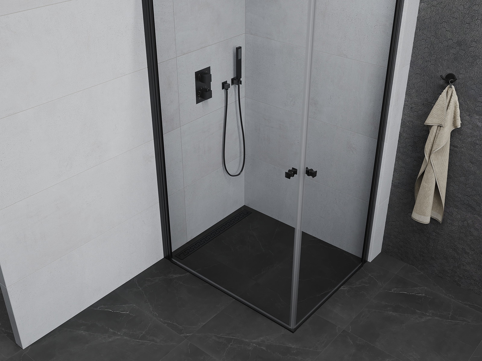 Mexen Pretoria Dviguba atveriama dušo kabina 80 x 70 cm, permatoma, juoda - 852-080-070-70-00-02