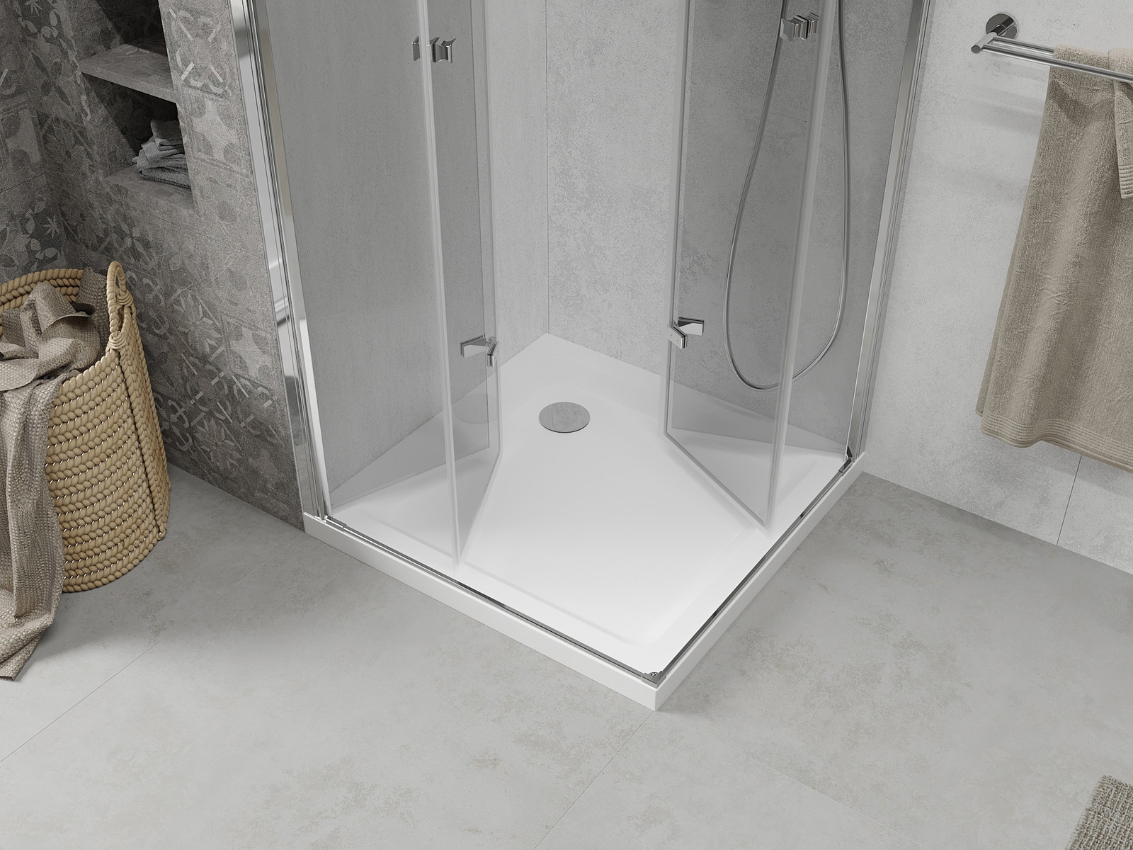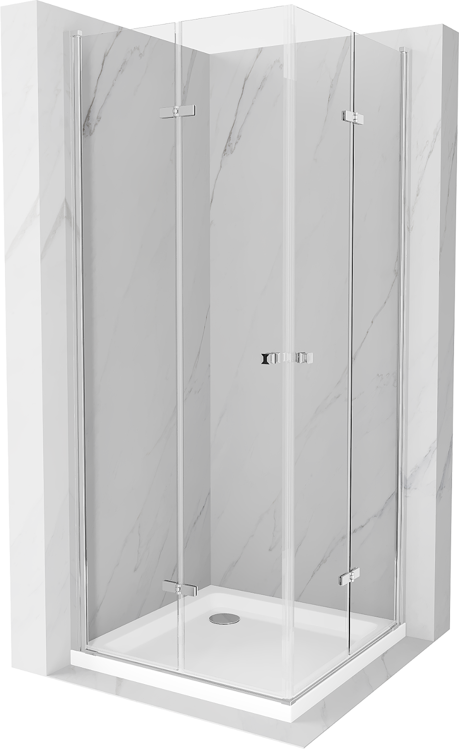 Mexen Lima Duo suskleidžiama dušo kabina 70 x 70 cm, skaidri, chromuota + „Flat“ padėklas - 856-070-070-01-02-4010