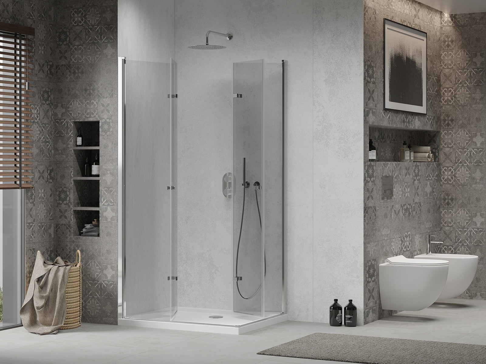 Galimybė sulenkti duris, tiek į išorę, tiek į vidų, leidžia gauti daugiau erdvės nenaudojant dušo. Tai yra idealus sprendimas mažesnėms vonios kambariams, maksimaliai išnaudojantis turimą plotą.