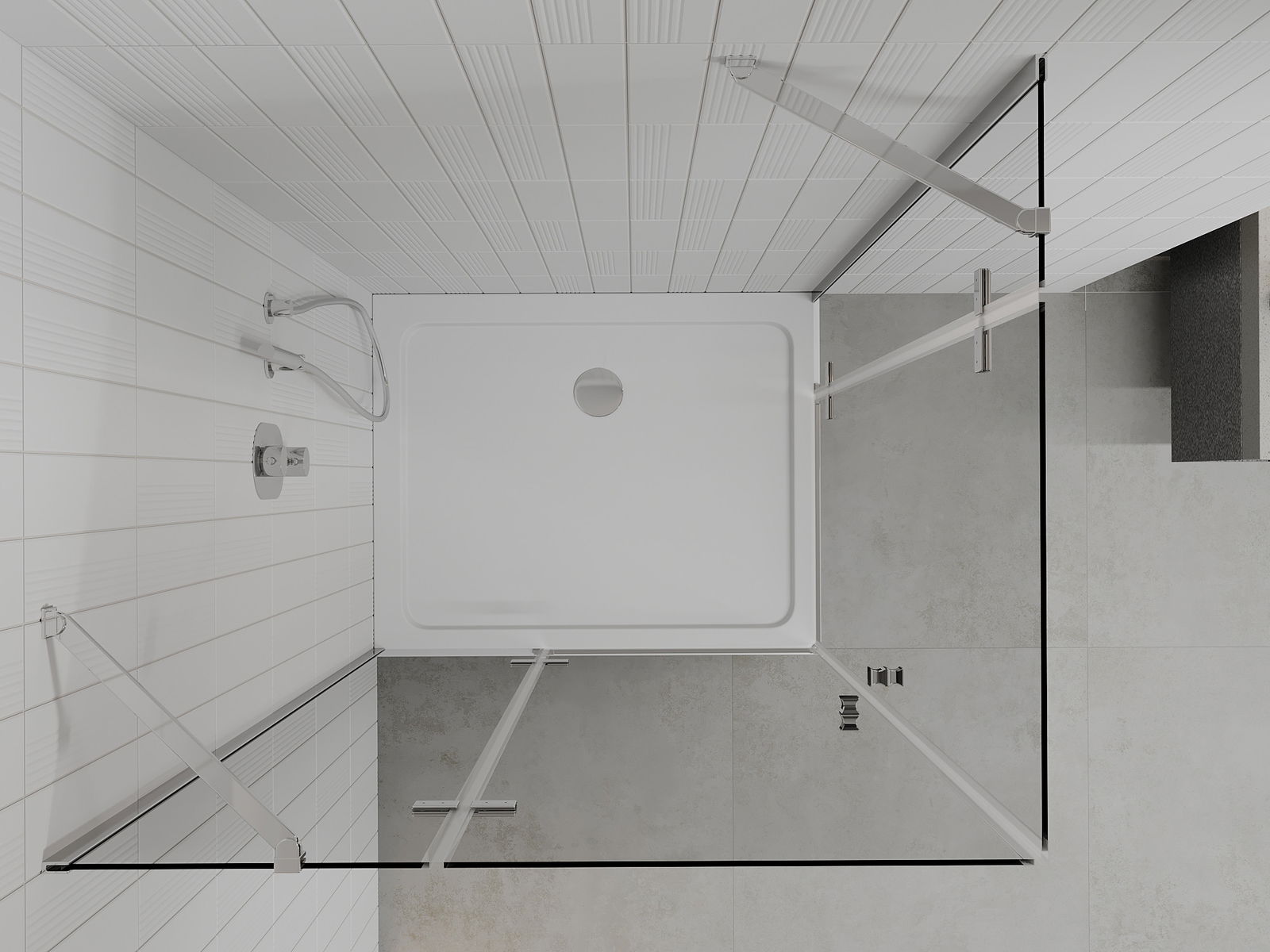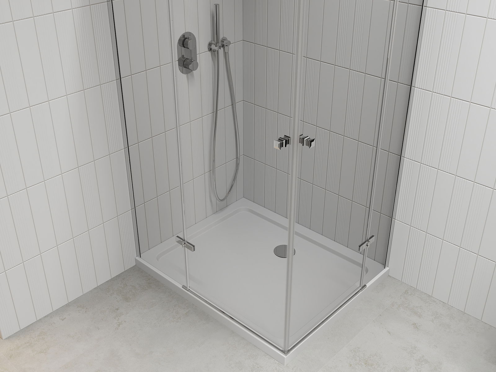 Mexen Roma Duo dušo kabina su užveriamomis durimis 90 x 80 cm, skaidri, chromuota + plokščia dušo bazė - 854-090-080-01-02-4010