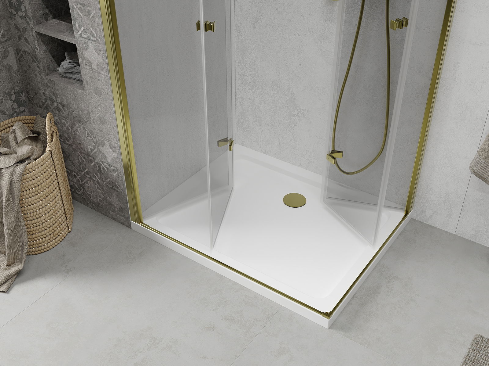 Mexen Lima Duo sulankstoma dušo kabina 80 x 70 cm, skaidri, auksinė + Flat dušo padėklas - 856-080-070-50-02-4010G