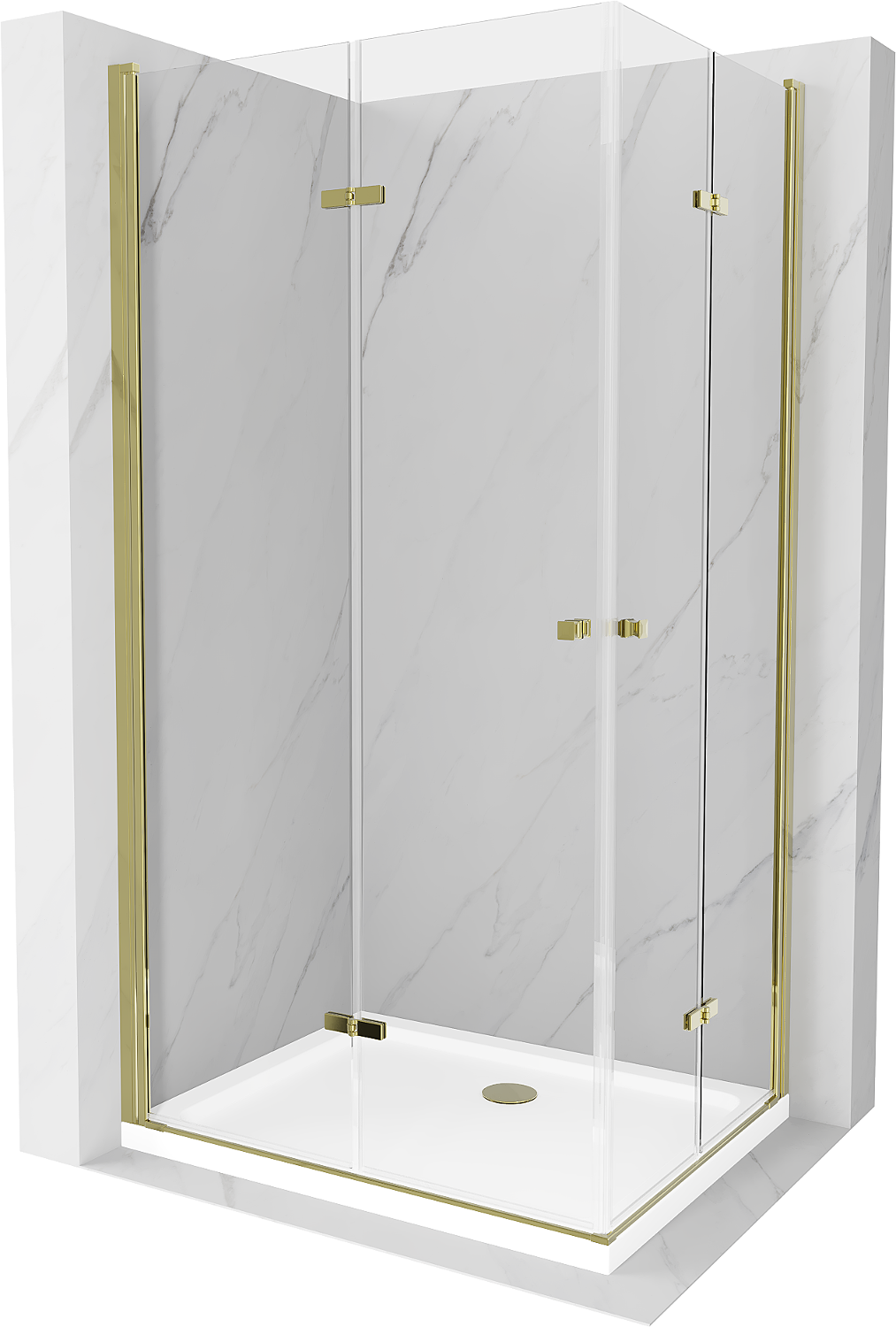 Mexen Lima Duo sulankstoma dušo kabina 90 x 80 cm, permatoma, aukso + Flat padėklas - 856-090-080-50-02-4010G