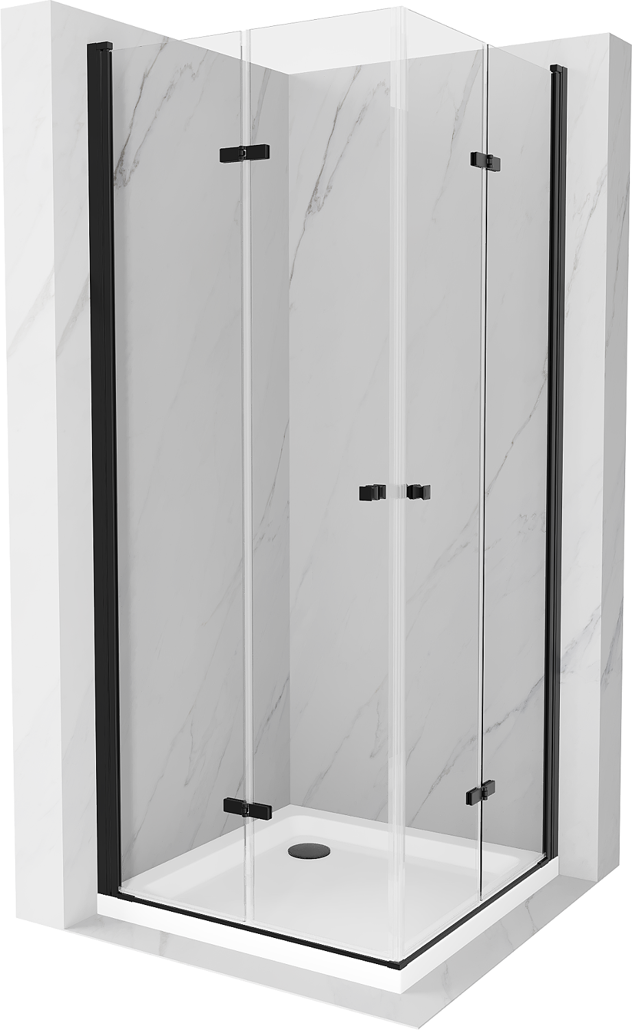 Mexen Lima Duo sulankstomas dušo kabina 70 x 70 cm, skaidri, juoda + Flat padėklas - 856-070-070-70-02-4010B