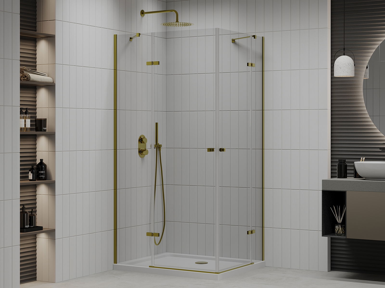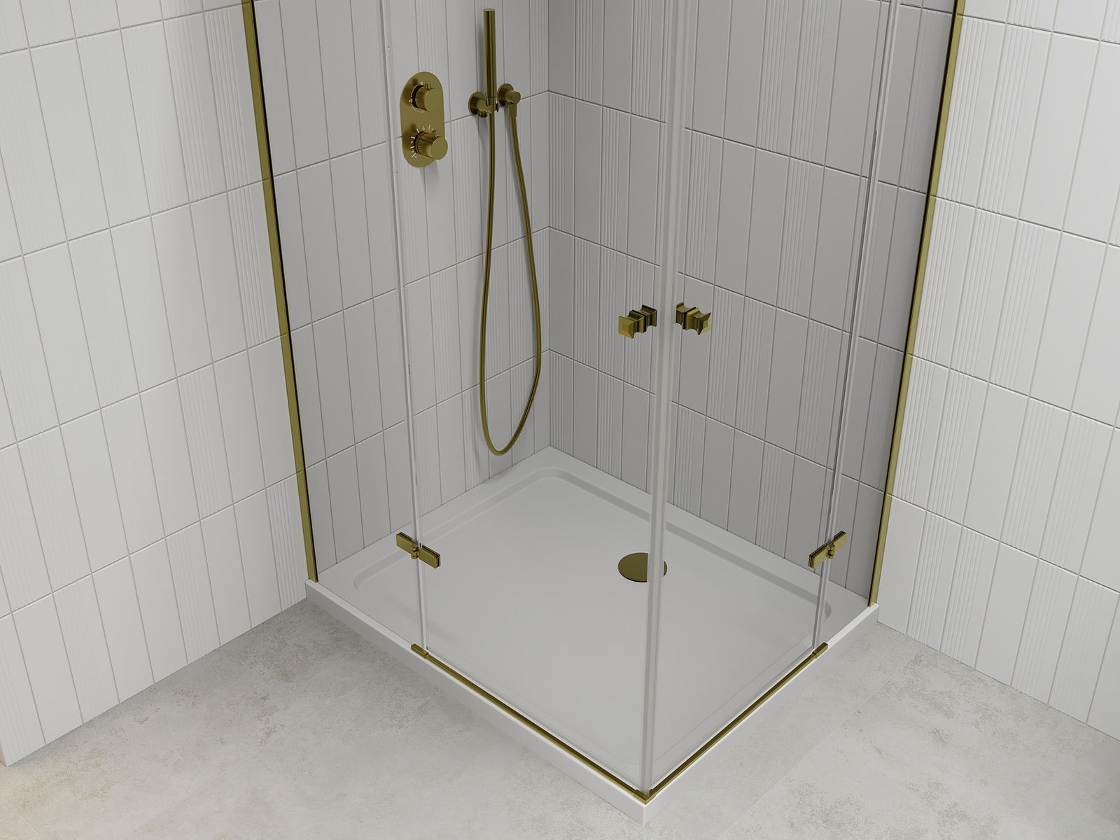 Mexen Roma Duo atveriama dušo kabina 80 x 70 cm, skaidri, auksinė + plokščias padėklas - 854-080-070-50-02-4010G