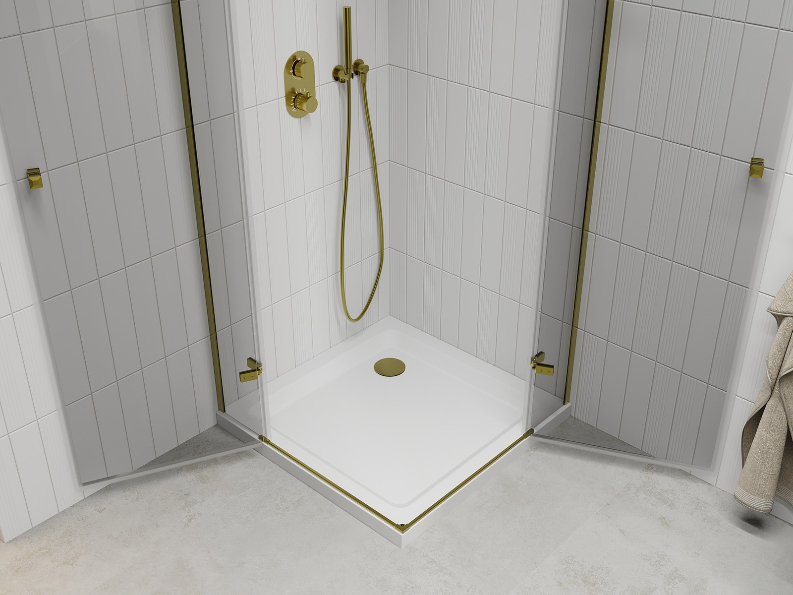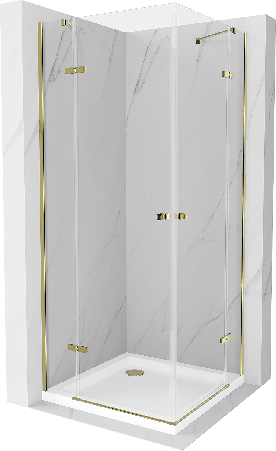 Mexen Roma Duo varstoma dušo kabina 90 x 90 cm, permatoma, auksinė + plokščias padėklas - 854-090-090-50-02-4010G