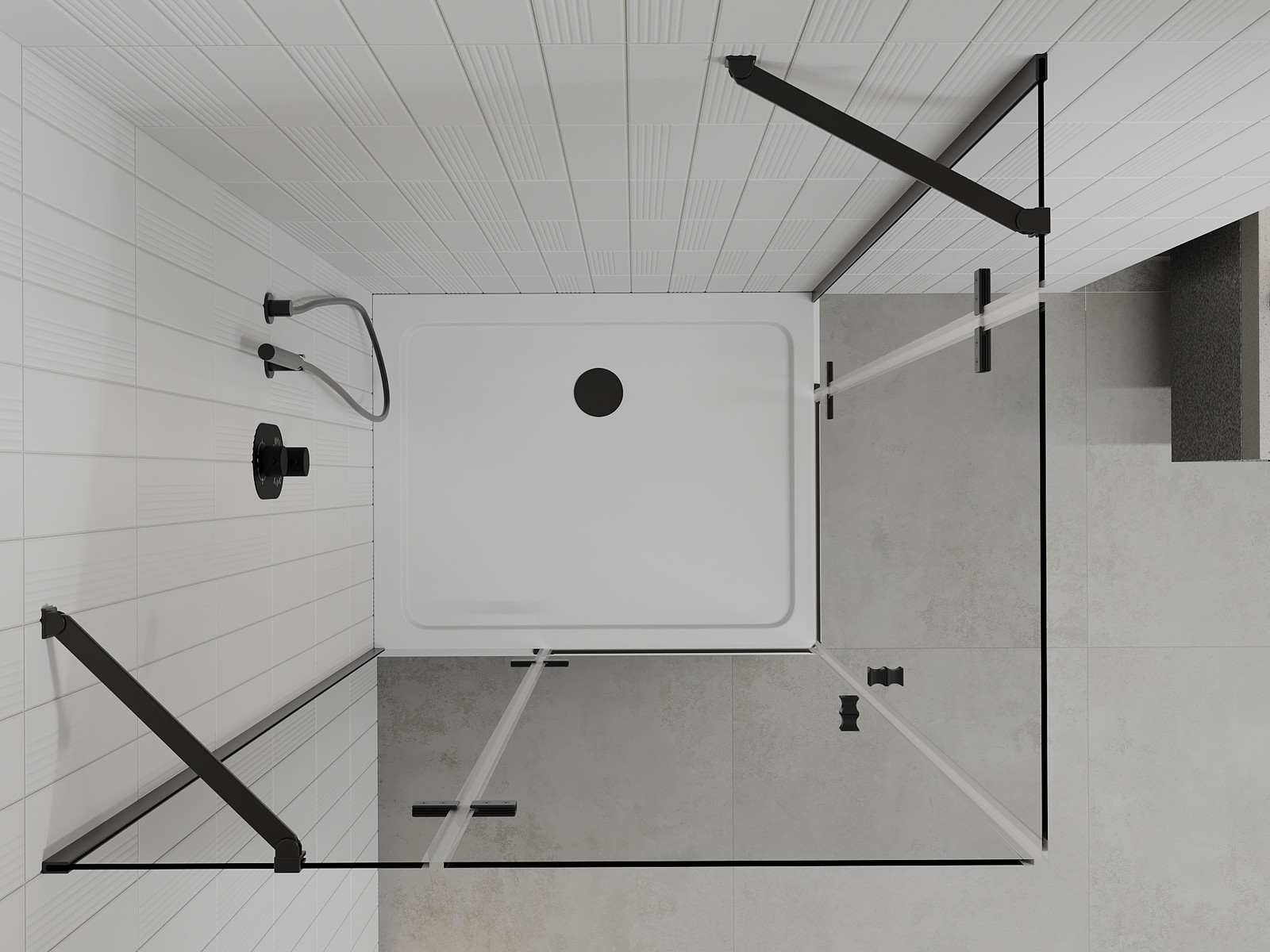 Mexen Roma Duo atveriama dušo kabina 100 x 90 cm, permatoma, juoda + Flat padėklas - 854-100-090-70-02-4010B