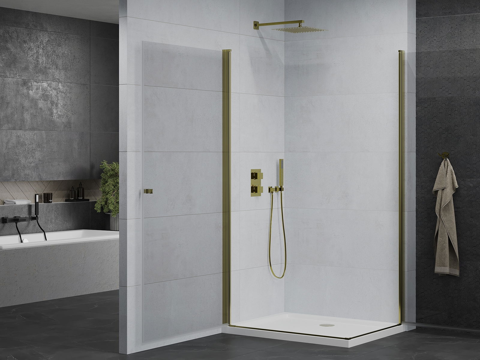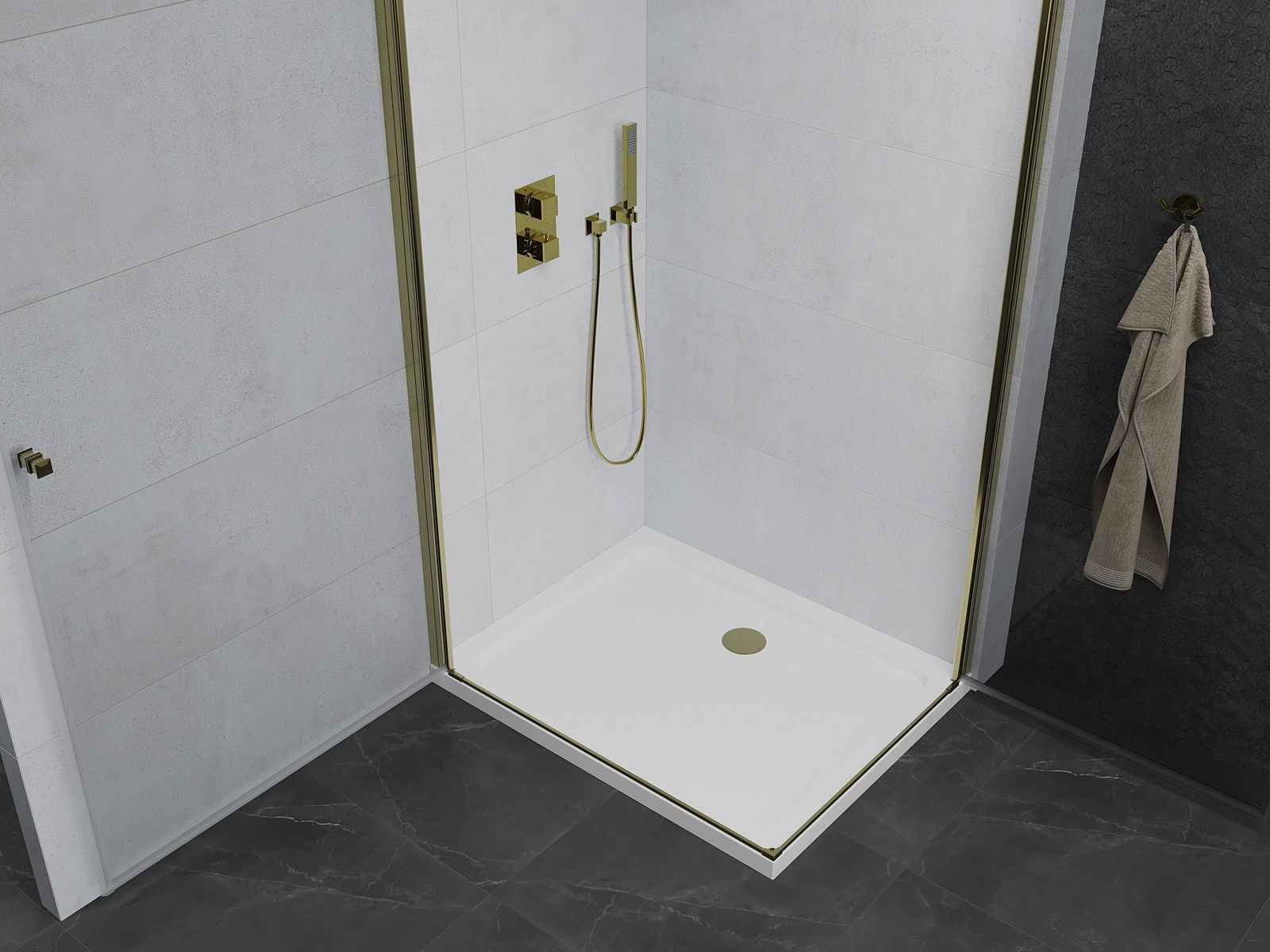 Mexen Pretoria Duo atveriama dušo kabina 80 x 70 cm, permatoma, auksinė + Flat padėklas - 852-080-070-50-02-4010G