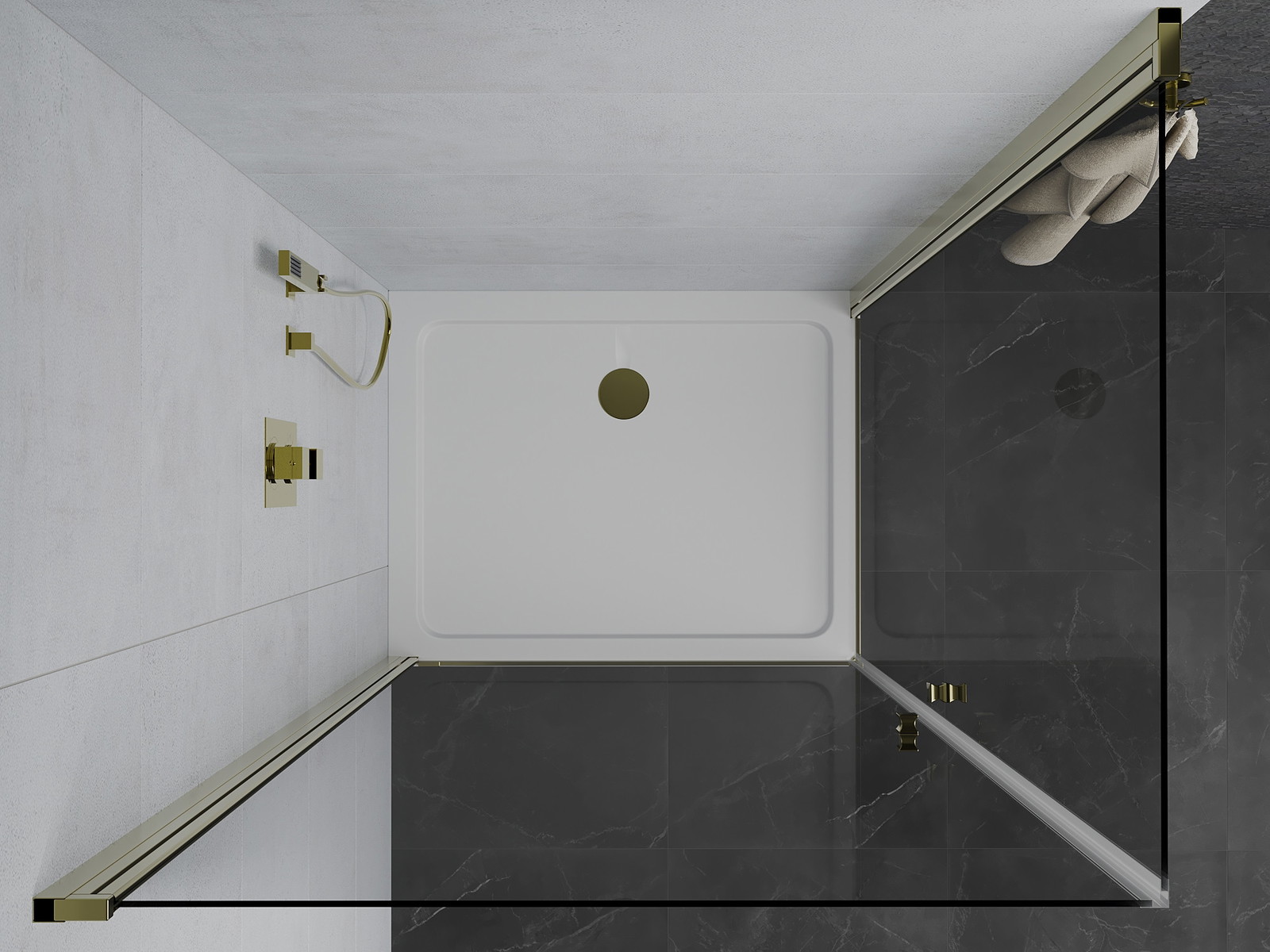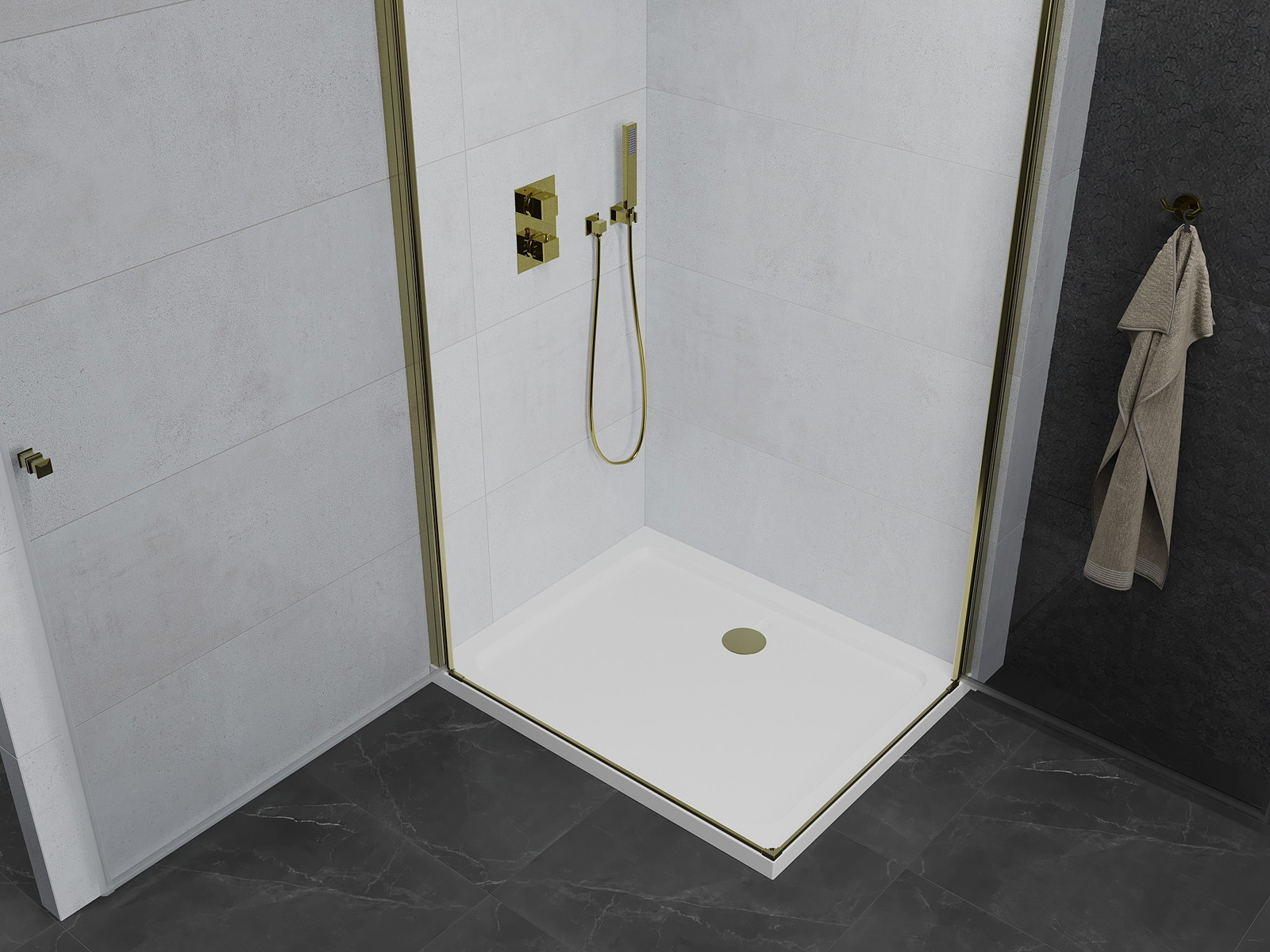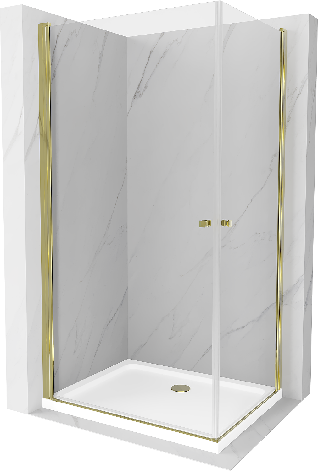 Mexen Pretoria Duo varstoma dušo kabina 80 x 70 cm, skaidri, auksinė + plokščias padėklas - 852-080-070-50-02-4010G