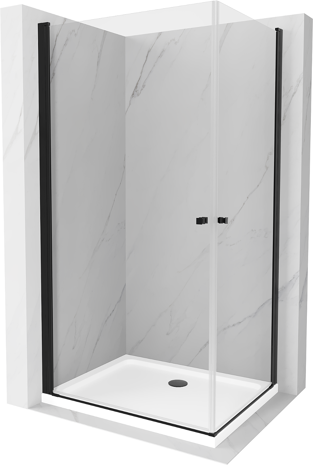 Mexen Pretoria Duo atveriama dušo kabina 80 x 70 cm, skaidri, juoda + Flat padėklas - 852-080-070-70-02-4010B