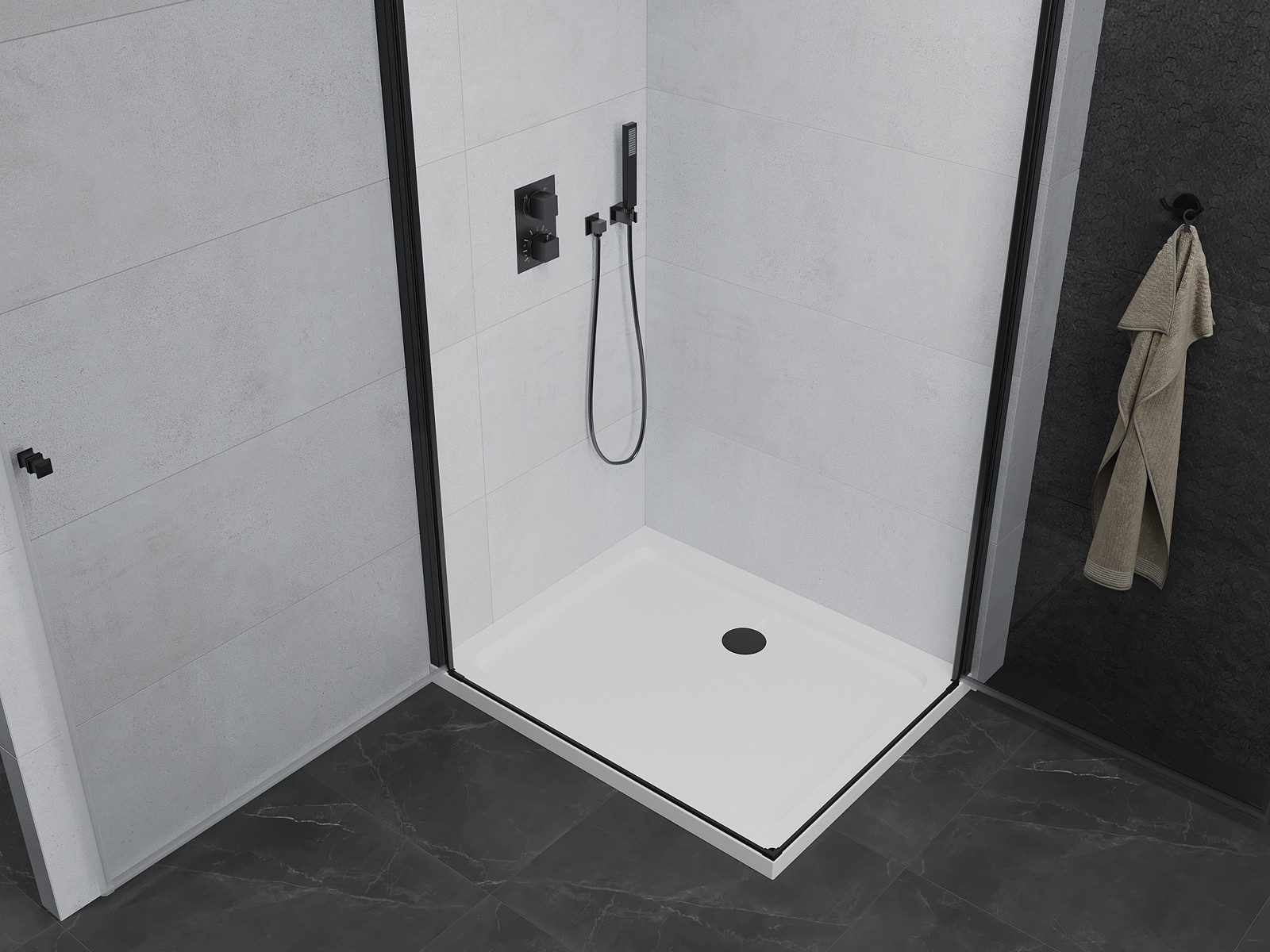 Mexen Rio kvardratinė dušo kabina 90 x 90 cm, permatoma, juoda - 860-090-090-70-00