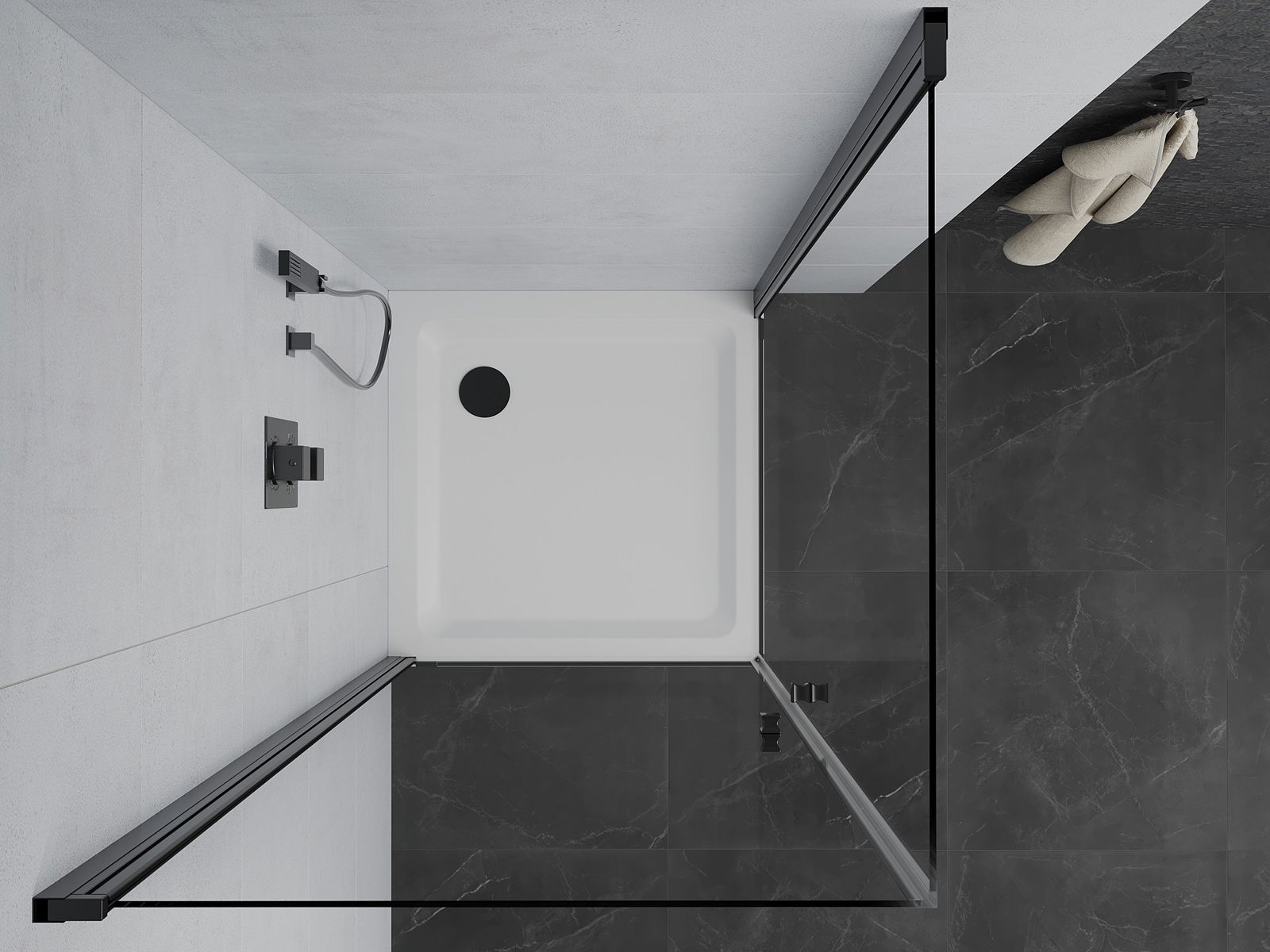 Mexen Rio kvardratinė dušo kabina 90 x 90 cm, permatoma, juoda - 860-090-090-70-00