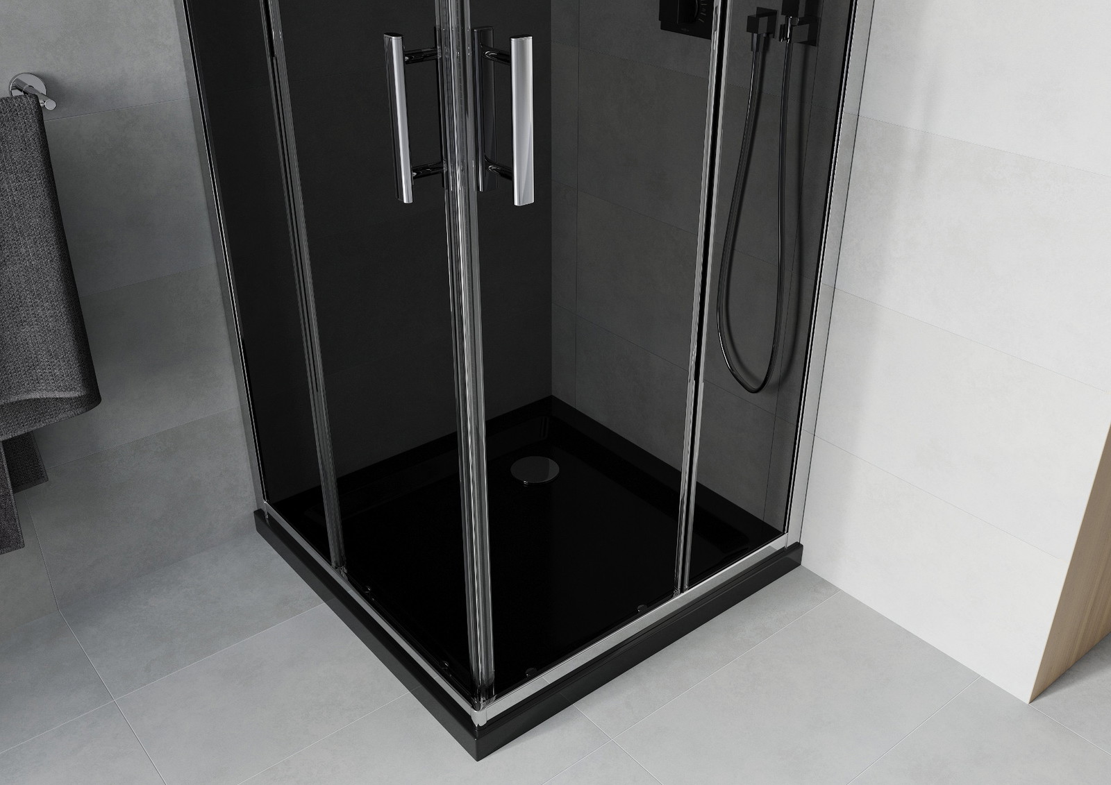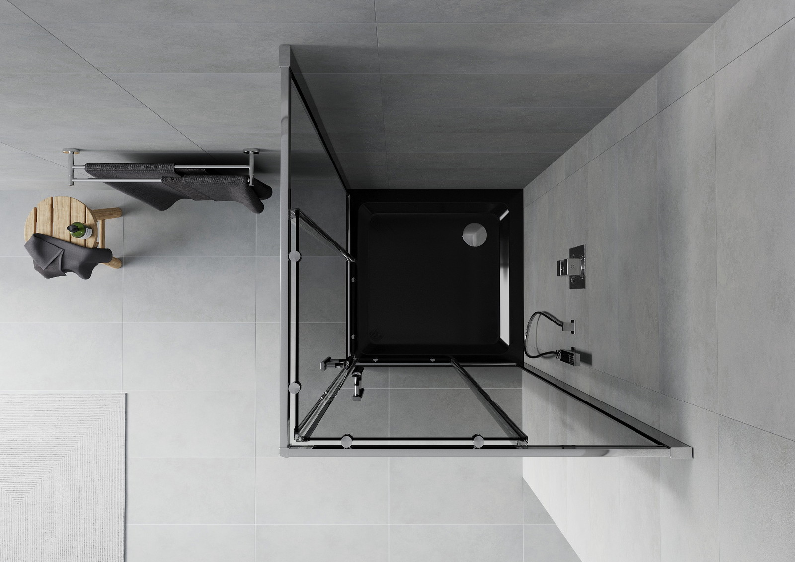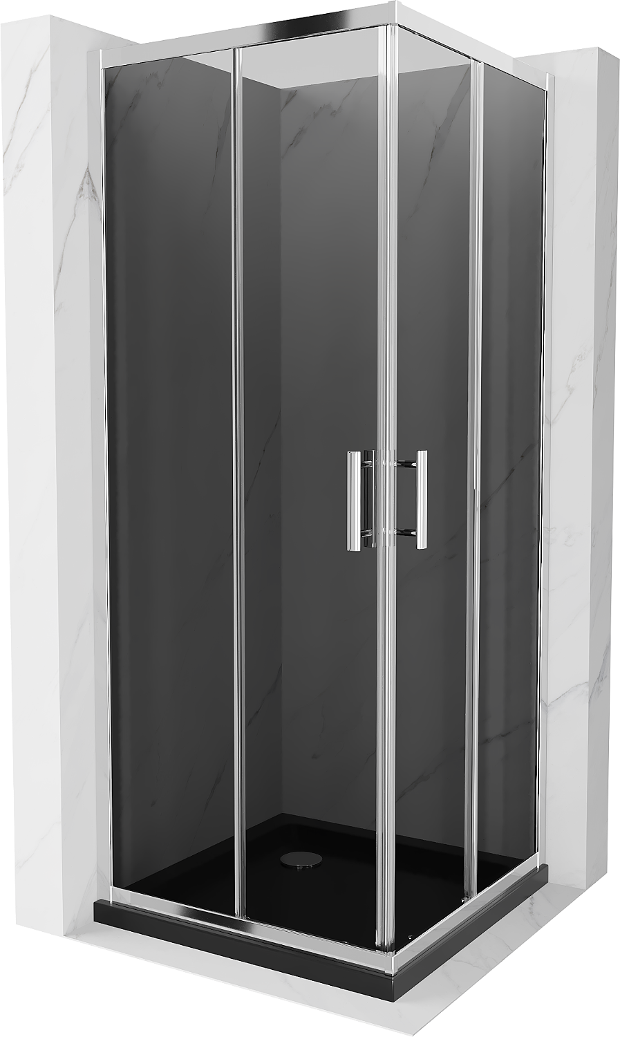Mexen Rio 80 x 80 cm kvadratinė dušo kabina, grafitinė, chromuota + juodas Flat padėklas - 860-080-080-01-40-4070