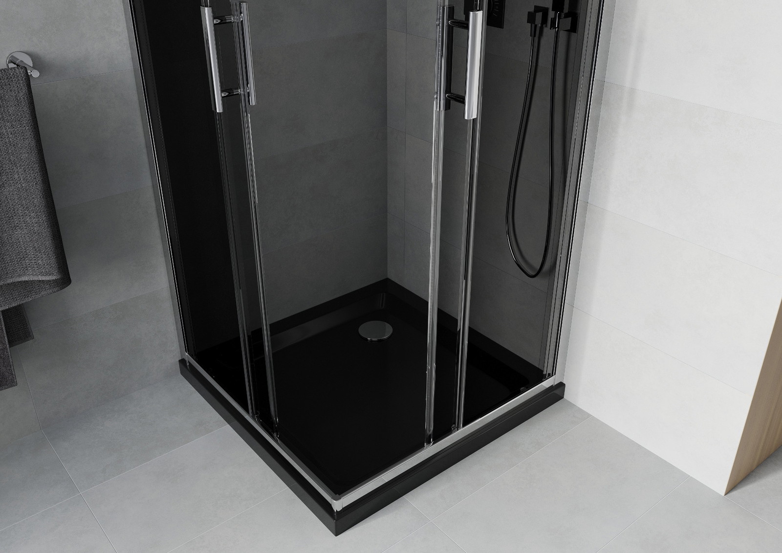 Mexen Rio kvadratinė dušo kabina 90 x 90 cm, grafitas, chromas + Flat dušo padėklas, juodas - 860-090-090-01-40-4070