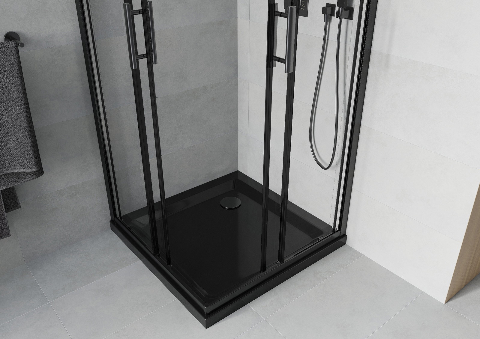 Mexen Rio kvardratinė dušo kabina 90 x 90 cm, permatoma, juoda - 860-090-090-70-00