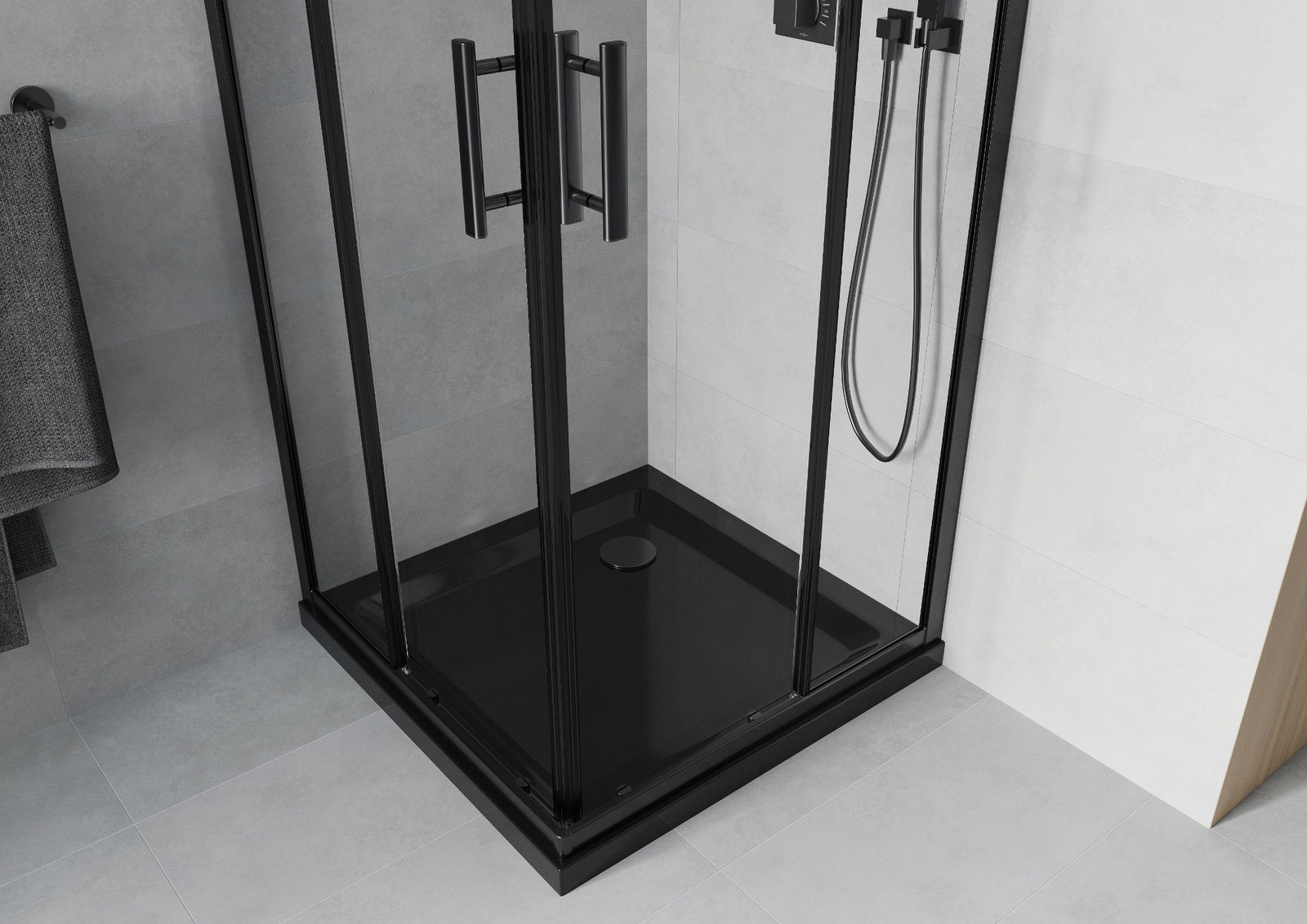 Mexen Rio kvadratinė dušo kabina 80 x 80 cm, skaidri, juoda + Flat padėklas, juodas - 860-080-080-70-00-4070B