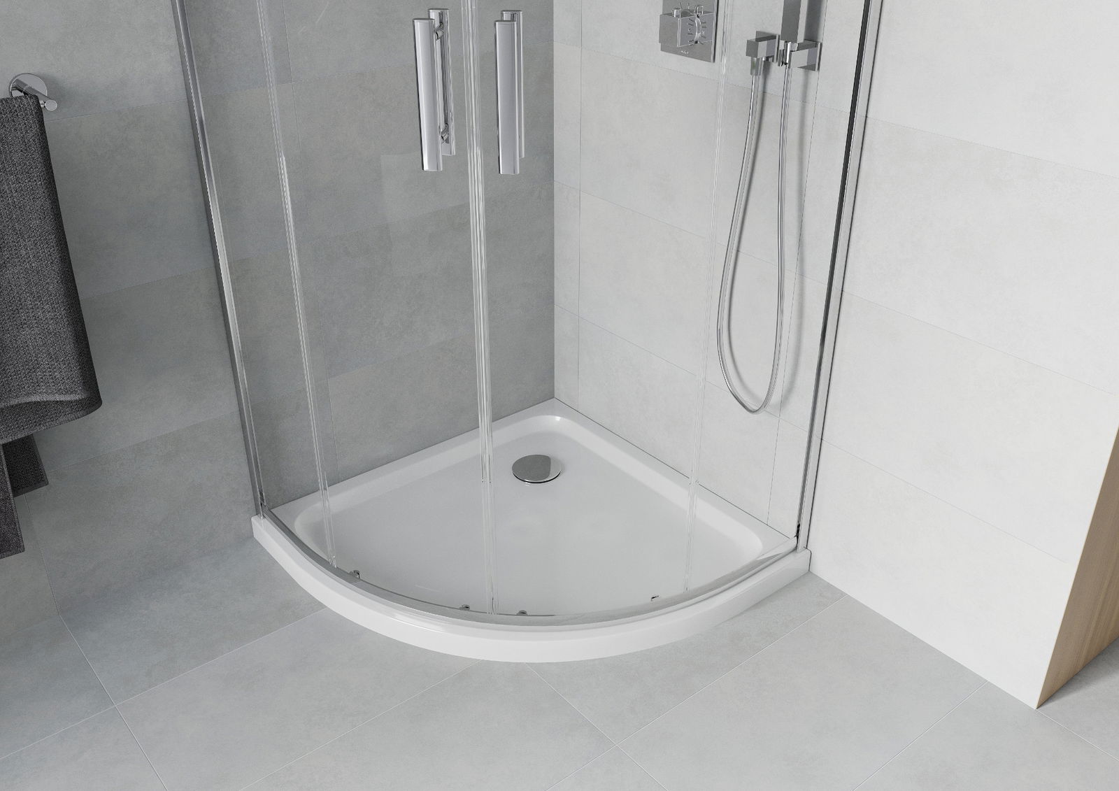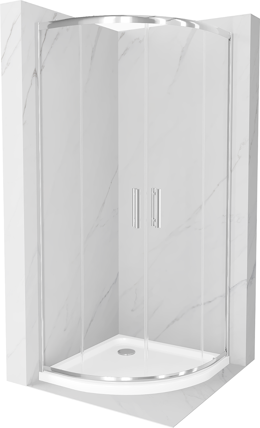 Mexen Rio pusapvalė dušo kabina 80 x 80 cm, skaidri, chromuota + Flat padėklas, baltas - 863-080-080-01-00-4110