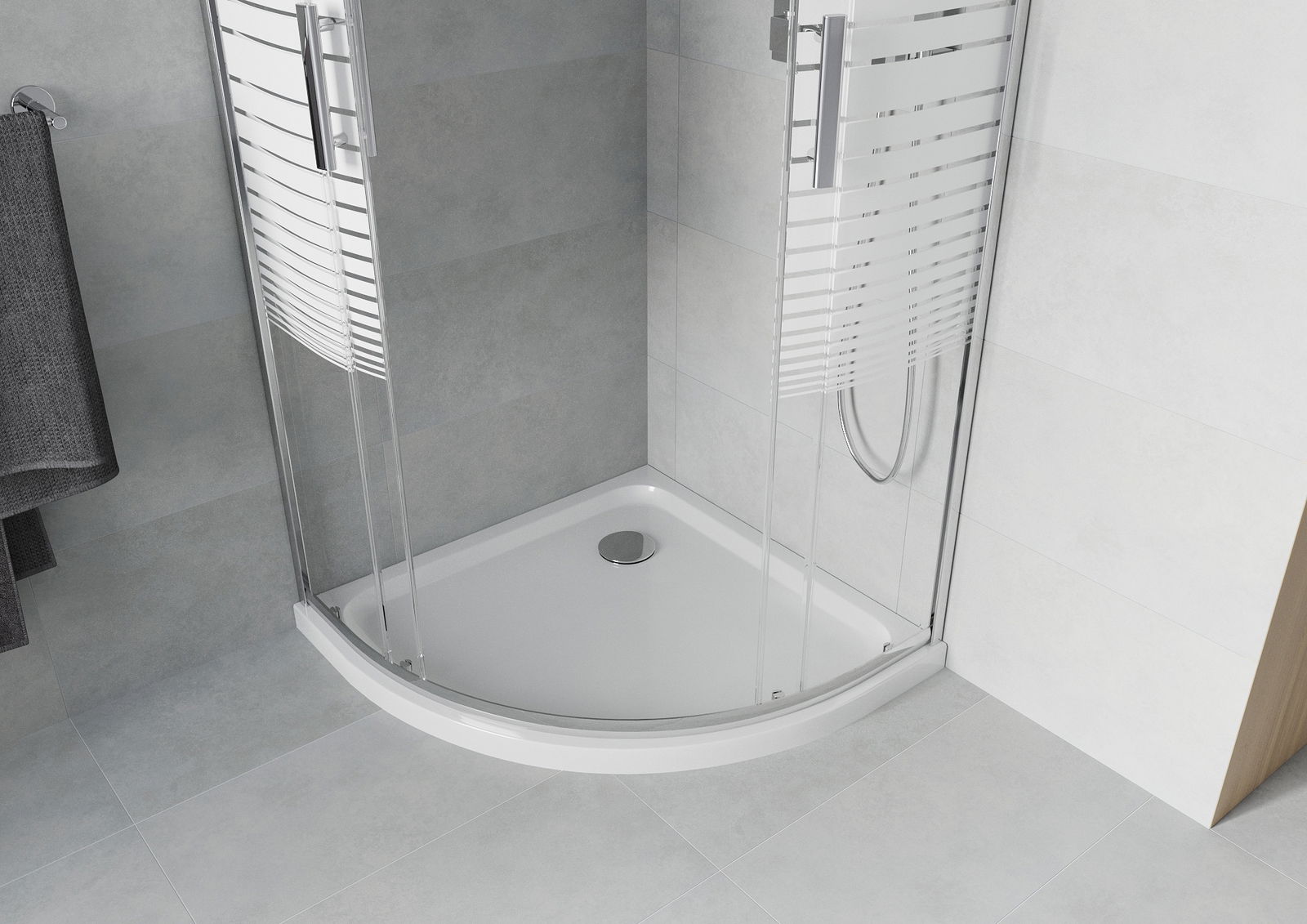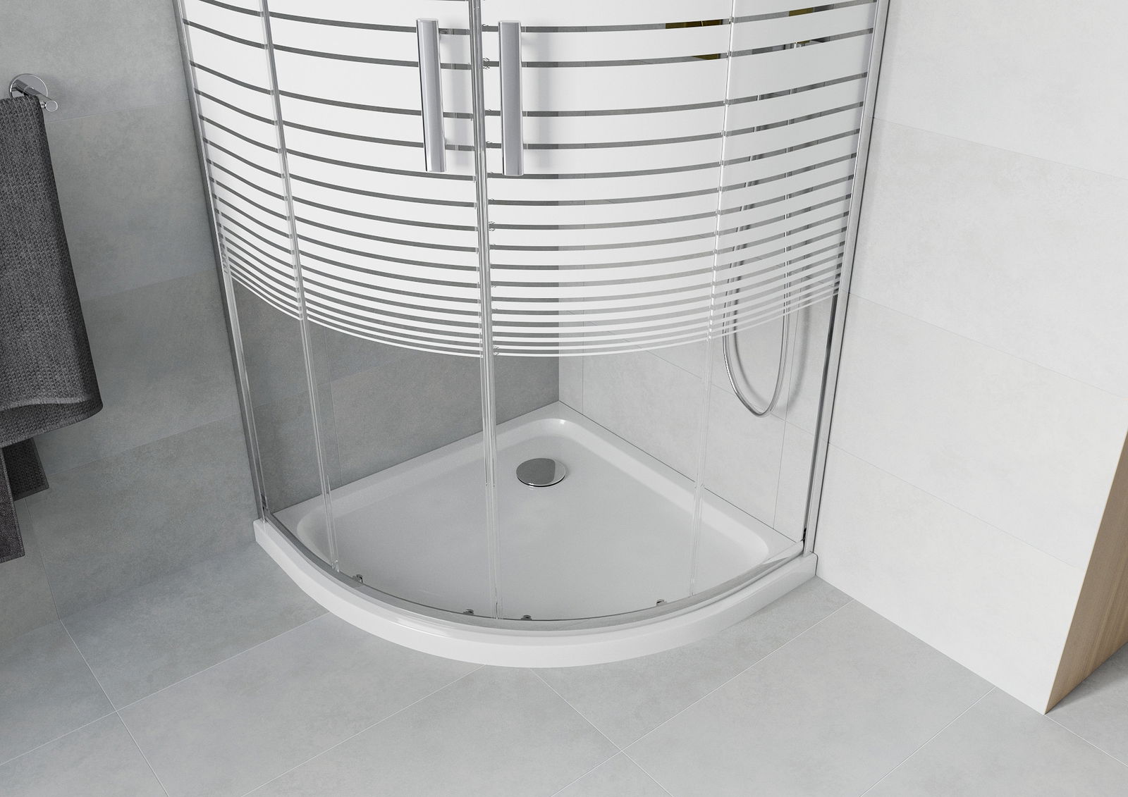 Mexen Rio pusapvalė dušo kabina 80 x 80 cm, baltos juostos, chromuota + Flat padėklas, baltas - 863-080-080-01-20-4110