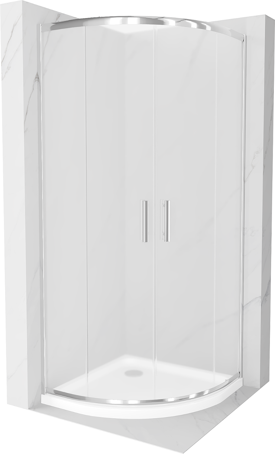 Mexen Rio pusapvalė dušo kabina 80 x 80 cm, matinė, chromas + Flat padėklas, baltas - 863-080-080-01-30-4110