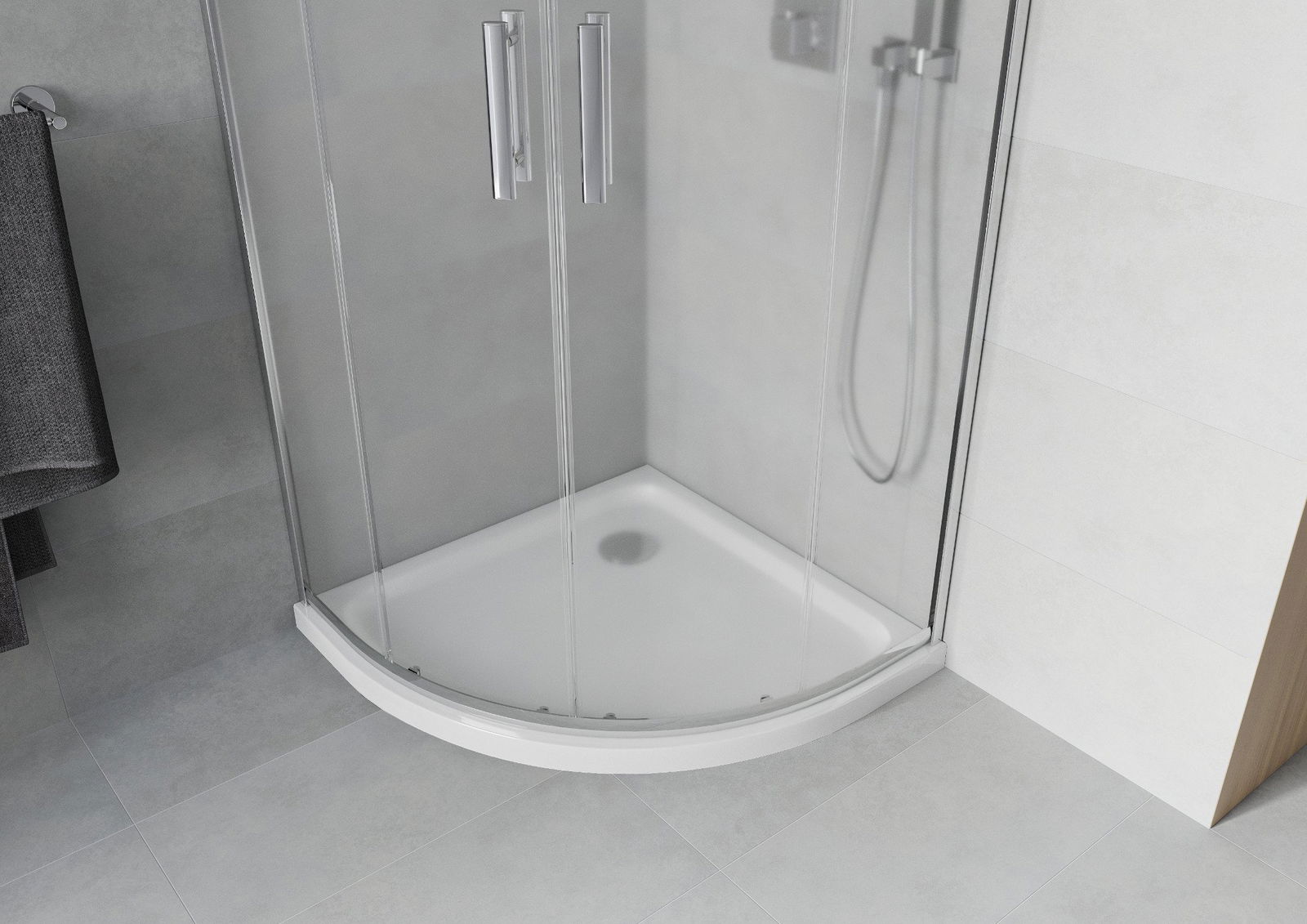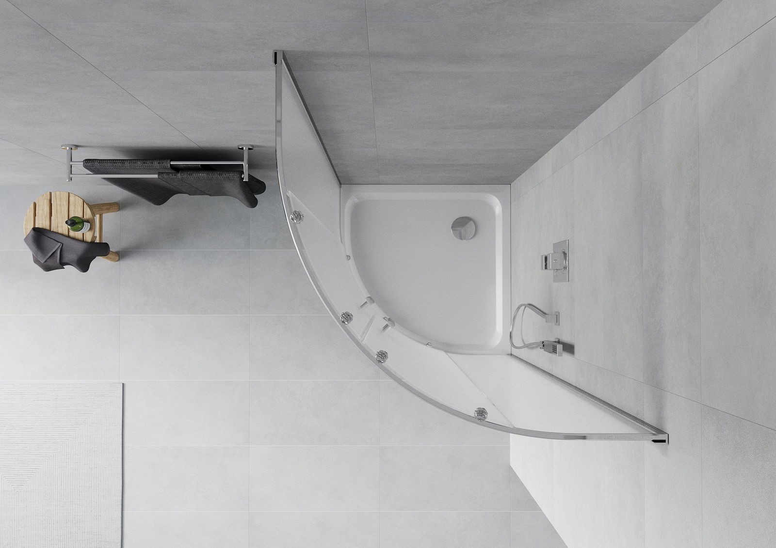 Mexen Rio pusapvalė dušo kabina 90 x 90 cm, matinė, chromas + Flat padėklas, baltas - 863-090-090-01-30-4110