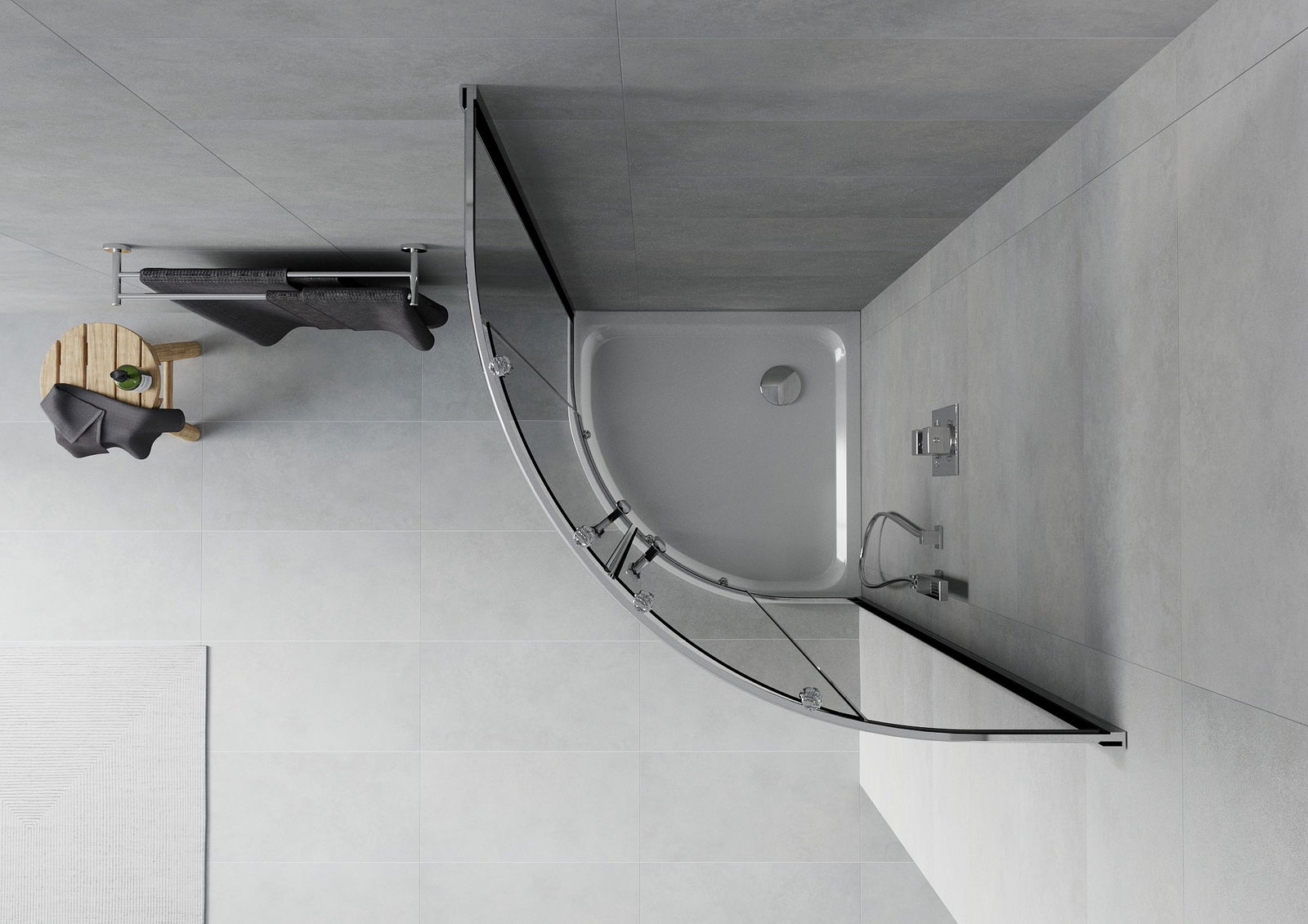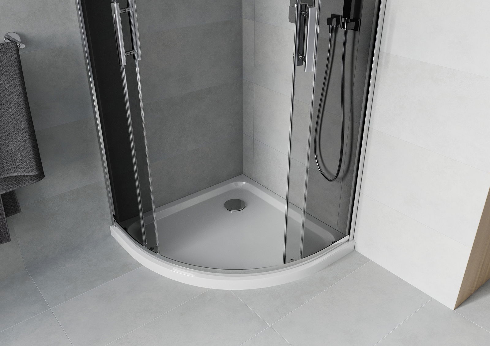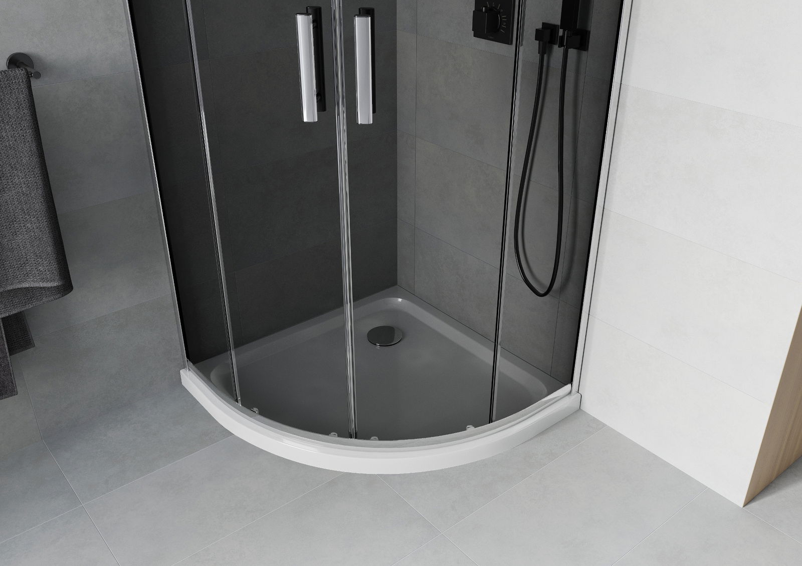 Mexen Rio pusapvalė dušo kabina 90 x 90 cm, grafitas, chromas + plokščias padėklas, baltas - 863-090-090-01-40-4110