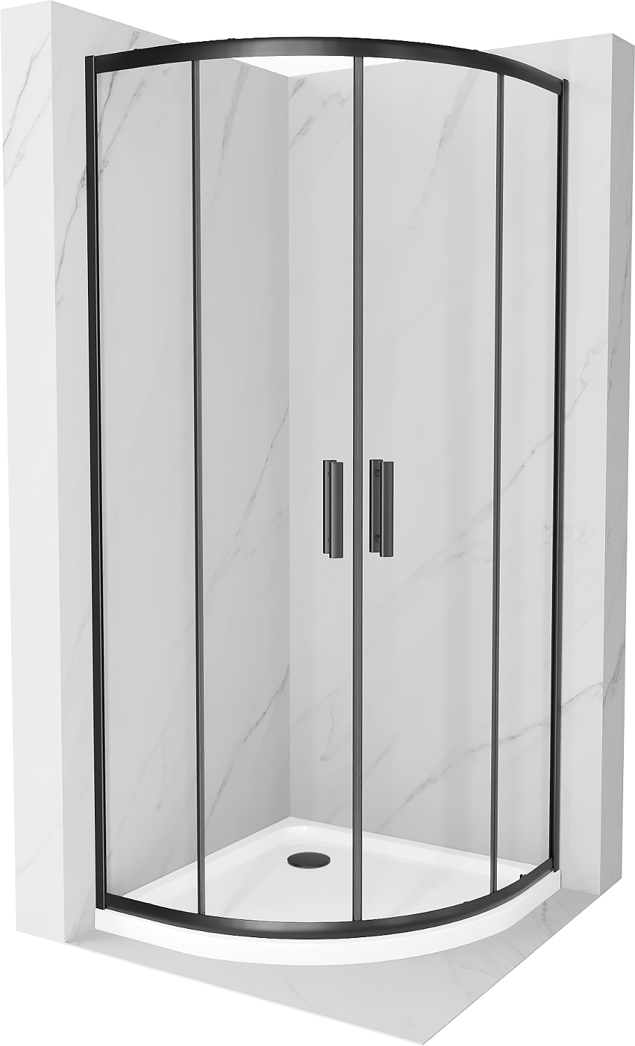 Mexen Rio pusapvalė dušo kabina 80 x 80 cm, skaidri, juoda + Flat, baltas dušo padėklas - 863-080-080-70-00-4110B