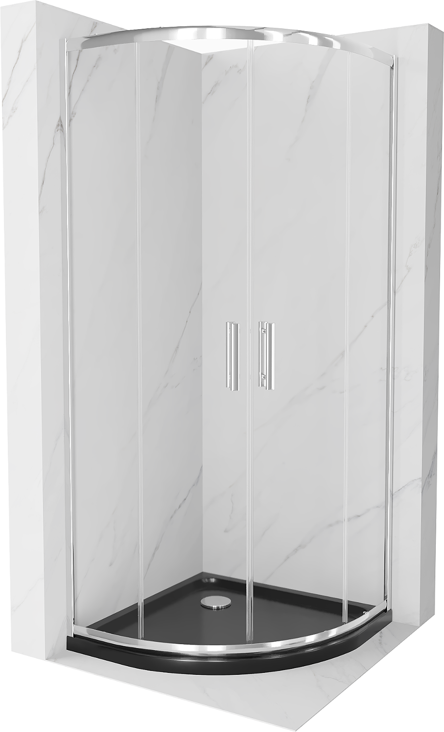 Mexen Rio pusapvalė dušo kabina 80 x 80 cm, skaidri, chromuota + plokščias padėklas, juodas - 863-080-080-01-00-4170