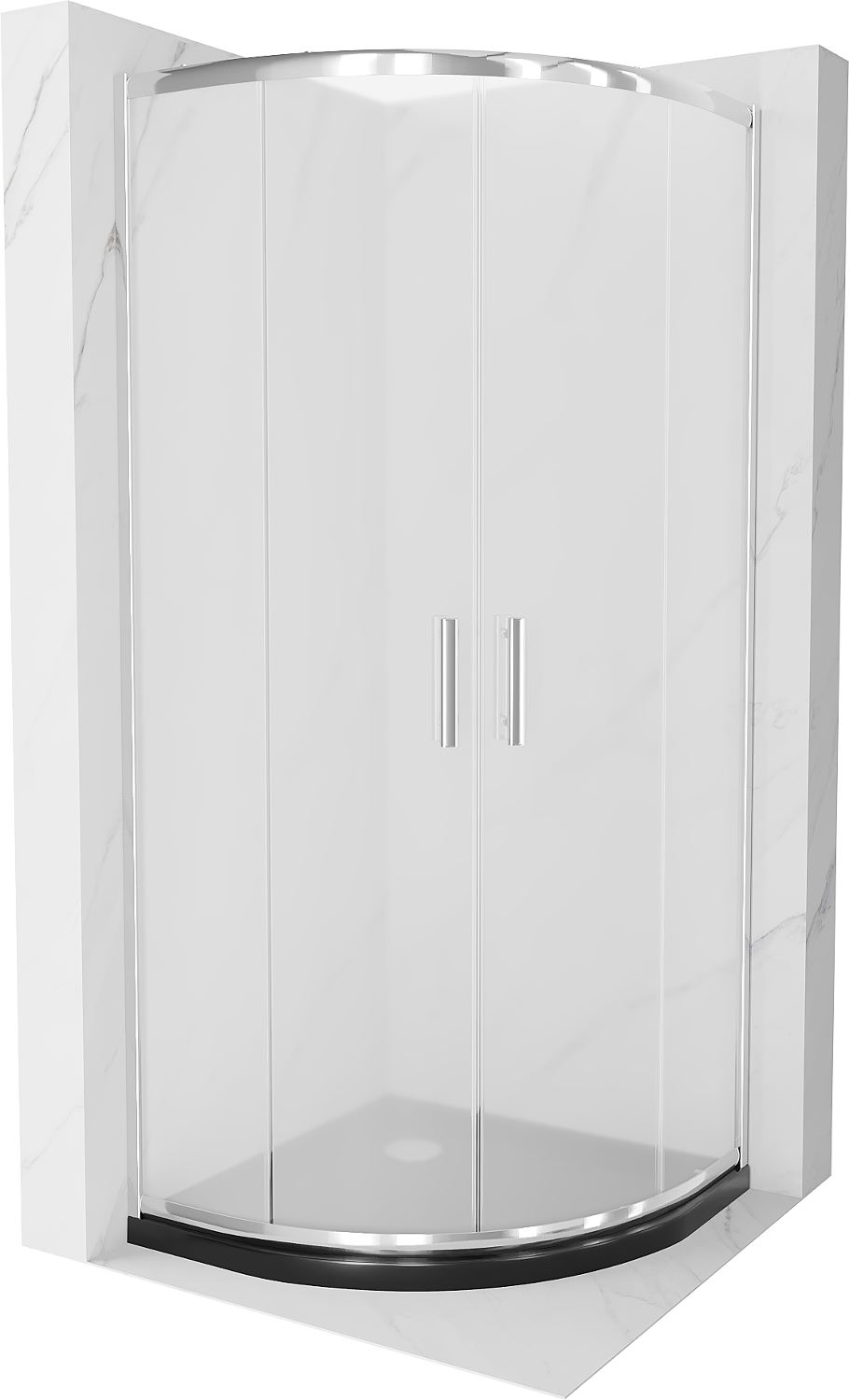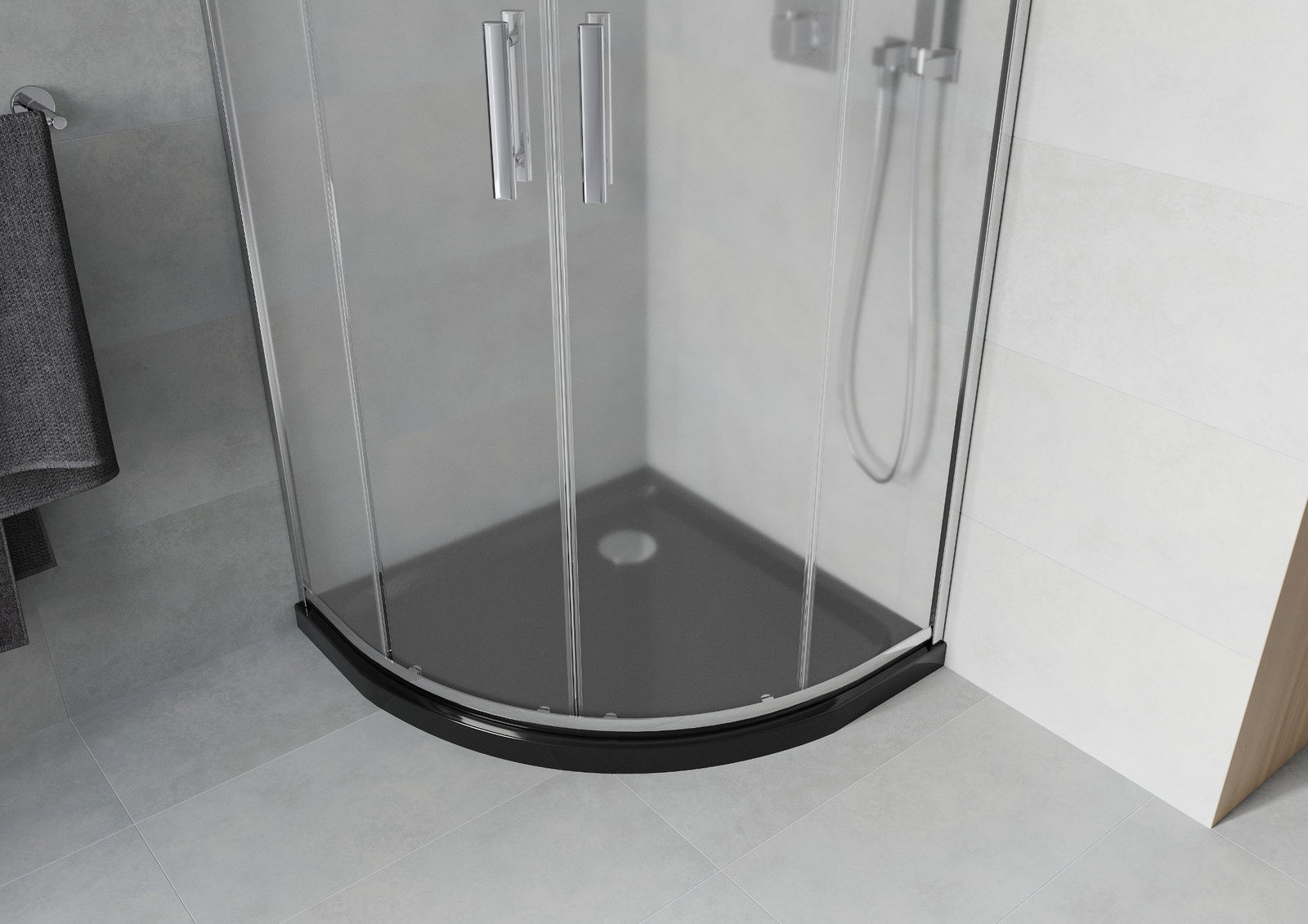 Mexen Rio pusapvalė dušo kabina 80 x 80 cm, matinė, chromuota + Flat padėklas, juodas - 863-080-080-01-30-4170
